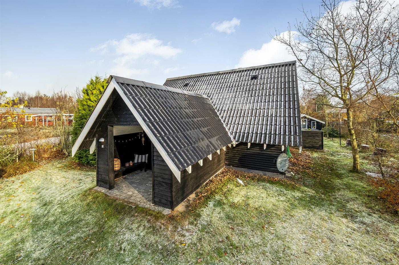 Den hyggelige grund byder på flere dejlige terrasser, herunder en skøn overdækket terrasse. Desuden findes der et vildmarkskar og flere små hyggekroge.