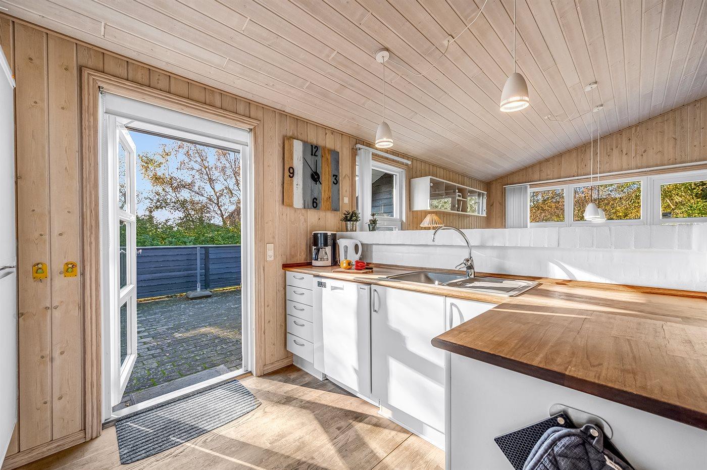 Køkkenet er udstyret med 1 køleskab. Der er 4 keramiske kogeplader, varmluftovn samt opvaskemaskine.