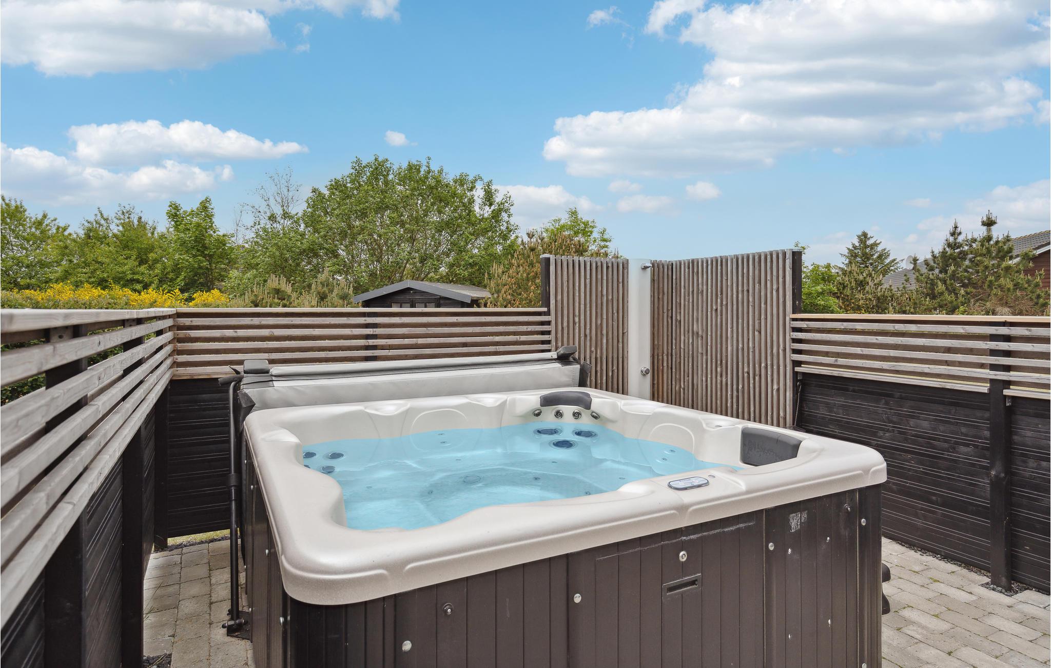 Nyd udendørs wellness i et komfortabelt feriehus ved fjorden.