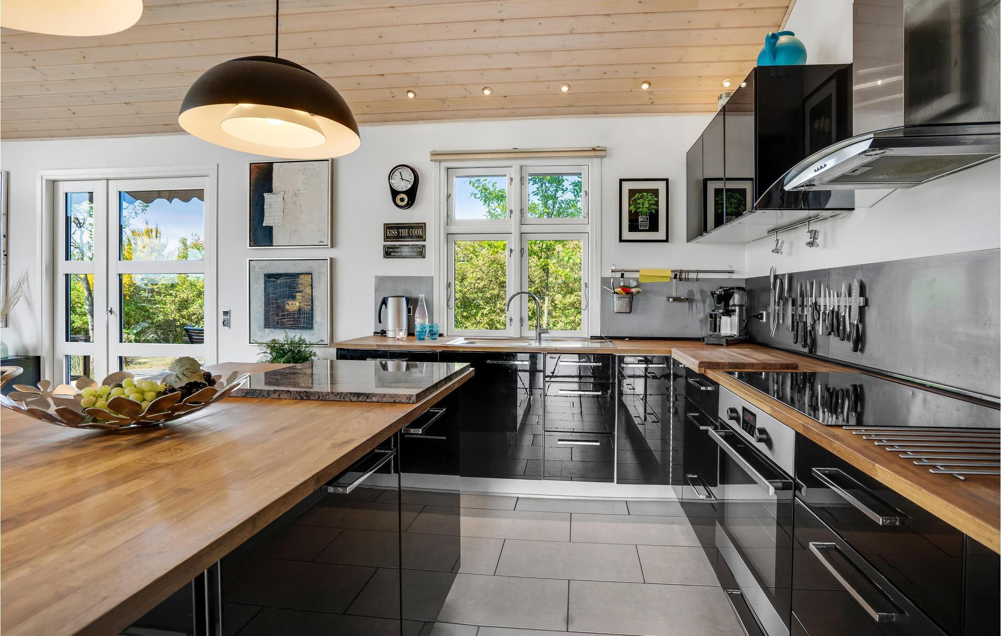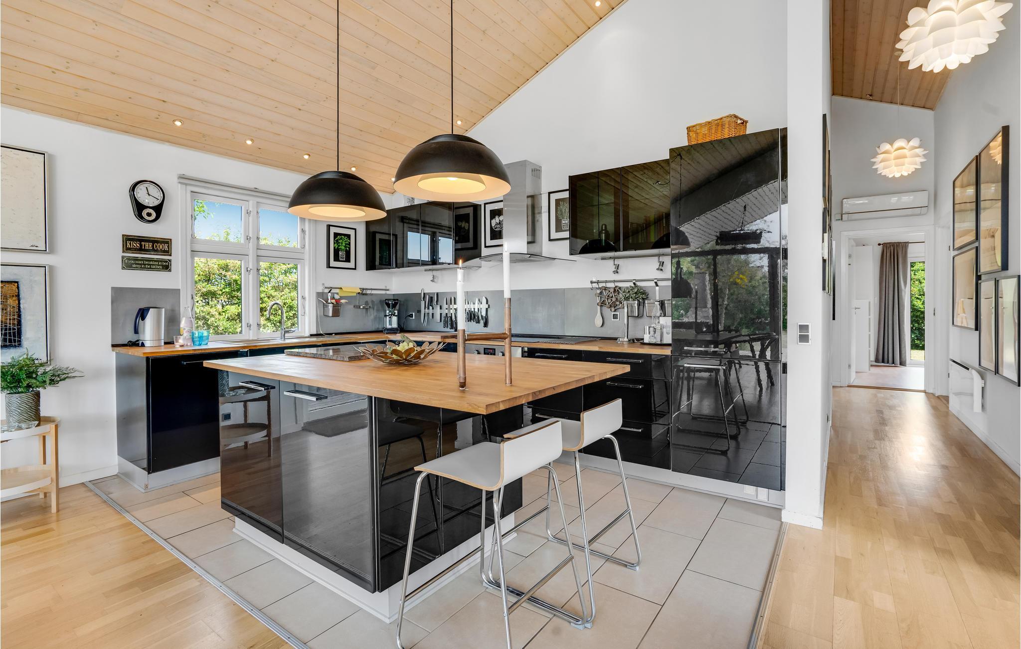 Hold en afslappende ferie i dette lyse og indbydende hus, kun en kort gåtur fra fjorden. Efter en slentretur på stranden kan I slappe af i spabadet. Det rummelige køkken lægger op til at lave mad sammen, og senere kan I gøre det behageligt i den attraktive opholdsstue, tænde op i brændeovnen og snakke længe i det komfortable siddeområde.