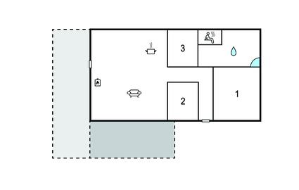 Badeværelse (nr. 1) - WC. Varmt og koldt vand. Bruser