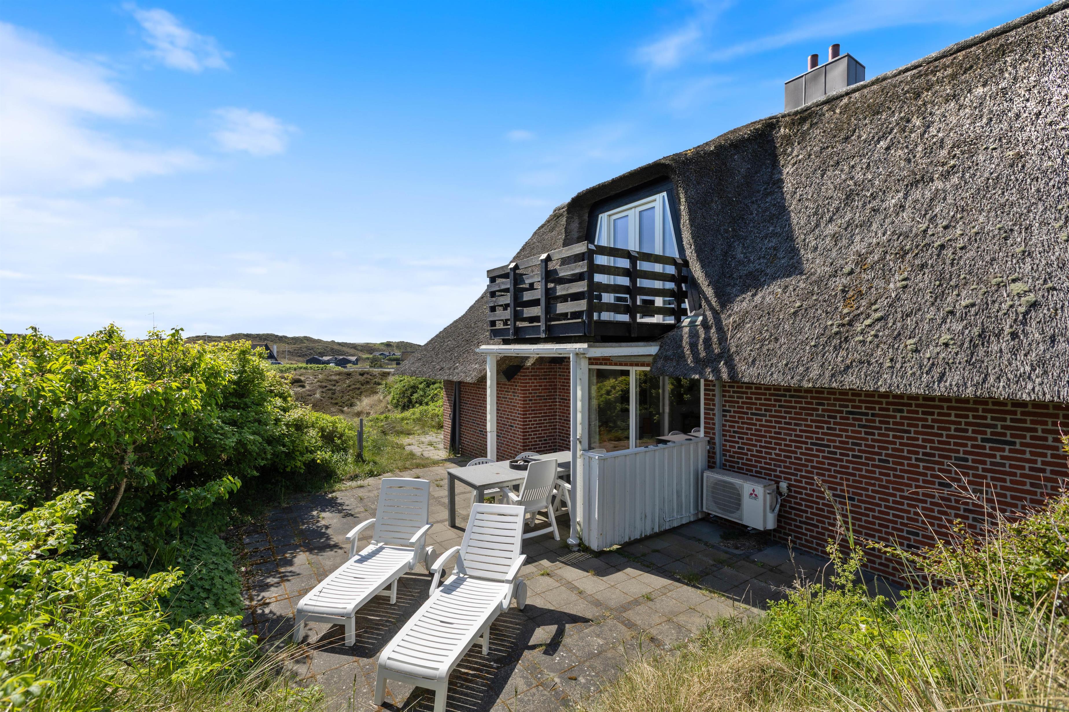 Tæt på Ringkøbing Fjord ligger dette stråtækte feriehus fra 1969 på hele 146 kvadratmeter med plads til 6 personer og 2 hunde. Det 2-stjernede Sommerhus er beliggende i Skodbjerge på en klittop med en skøn udsigt over det smukke lyngbeklædte klitlandskab, og flere steder fra grunden er der tilmed udsigt til Ringkøbing Fjord. Feriehuset ligger på en stor naturgrund, hvor I helt uforstyrret kan nyde en skøn ferie med familie og venner.