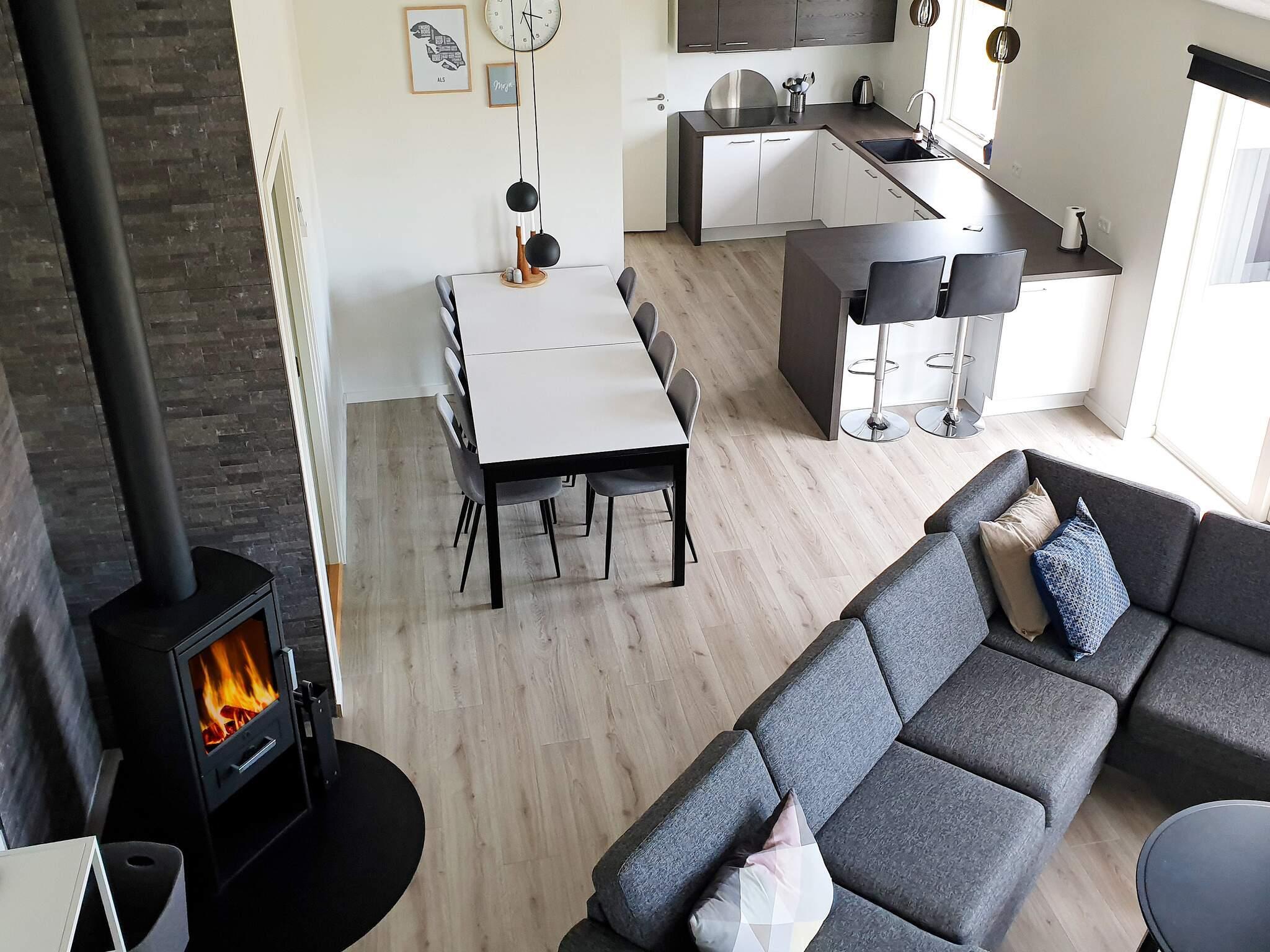 Åbent køkken integreret med stor stue med bl.a. internet og kabel-tv. I badeværelset finder I spabad og sauna, hvor I kan slappe af og få fornyet energi og velvære. Med sine 10 sovepladser er huset ideelt til to familier.