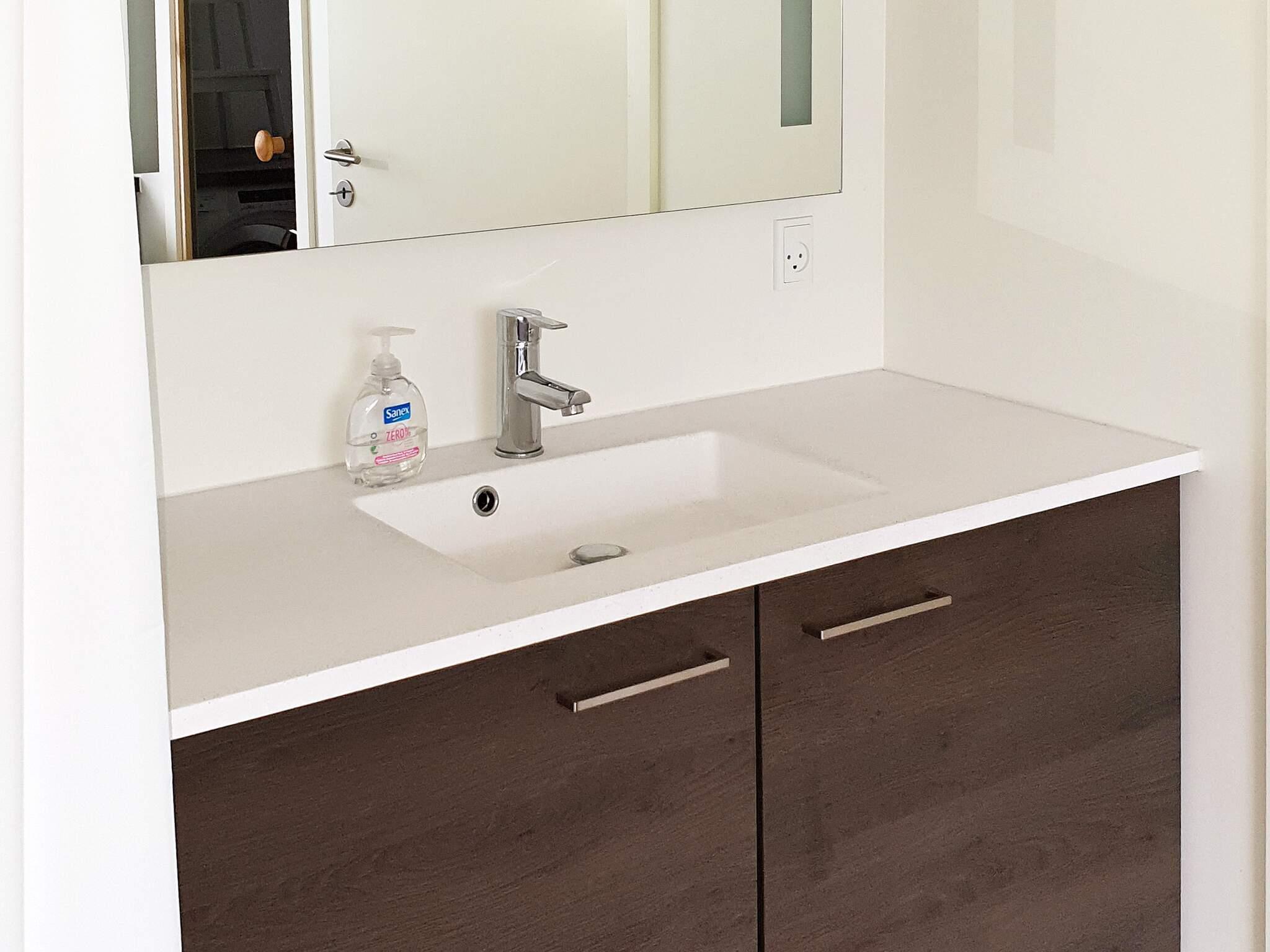 Bad/wc: Wc, håndvask, bruseniche, gulvvarme