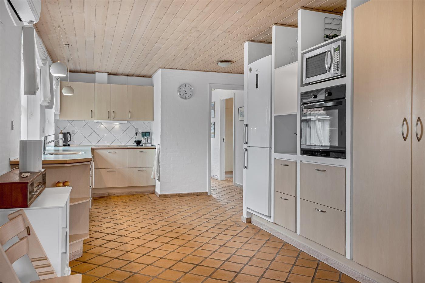 Køkkenet er udstyret med 1 køleskab. Der er 4 keramiske kogeplader, miniovn, varmluftovn, mikrobølgeovn samt opvaskemaskine.