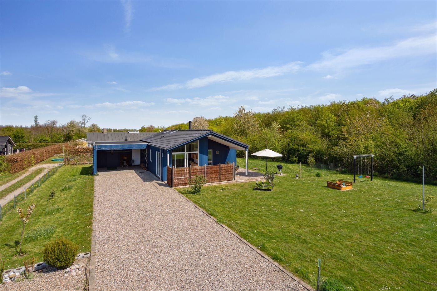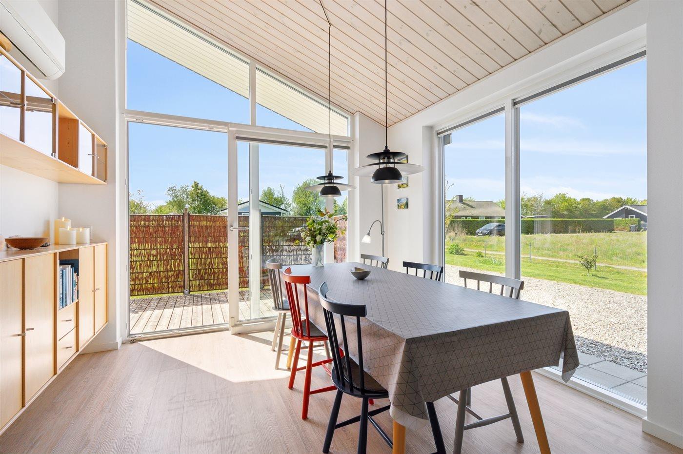 Moderne sommerhus i Skovmose med spa, sauna og tæt på børnevenlig strand.
