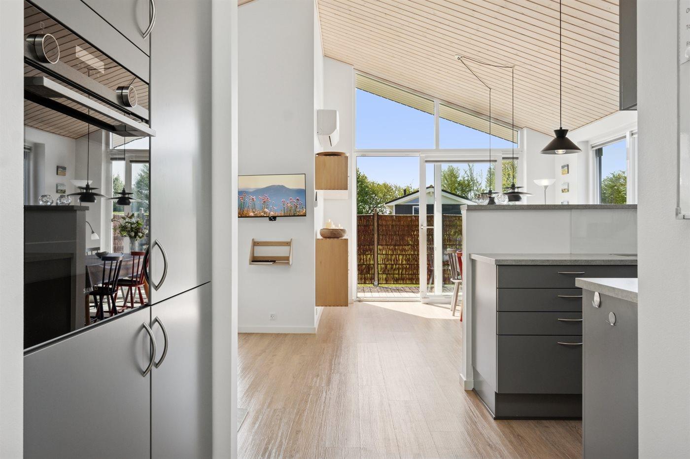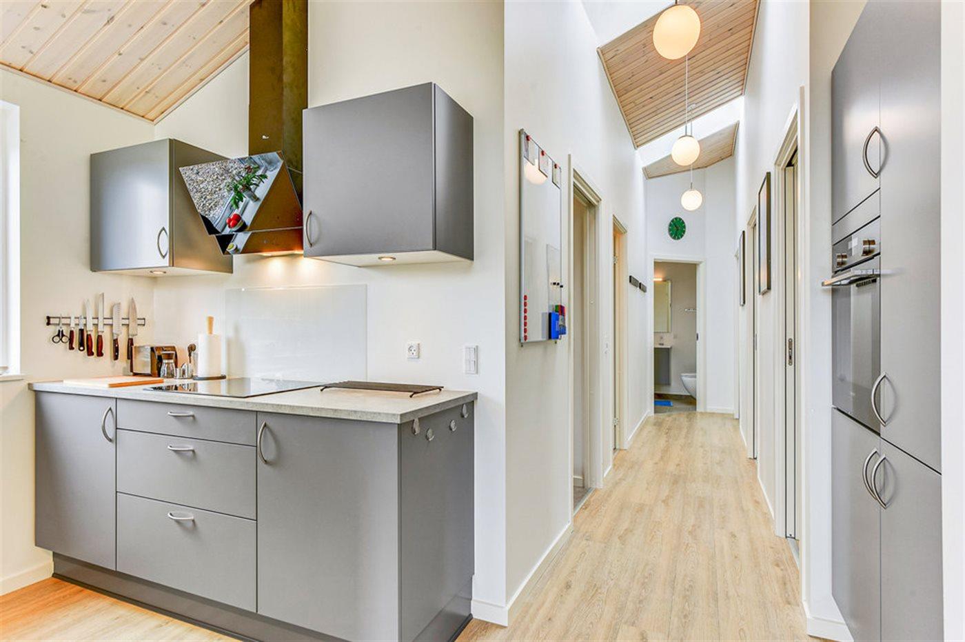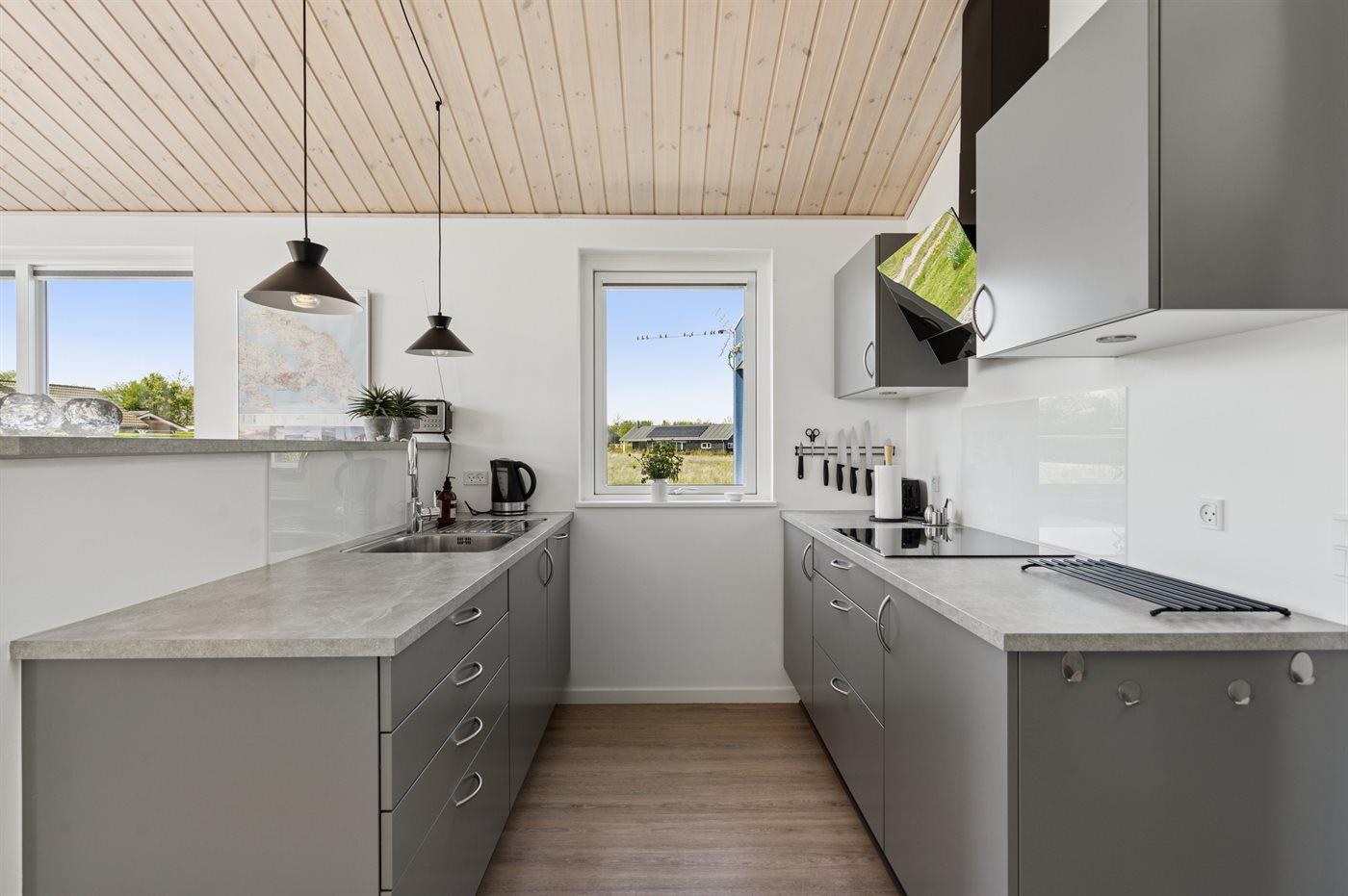Køkkenet er udstyret med 1 køleskab. Der er 4 induktionskogeplader, varmluftovn, mikrobølgeovn samt opvaskemaskine.