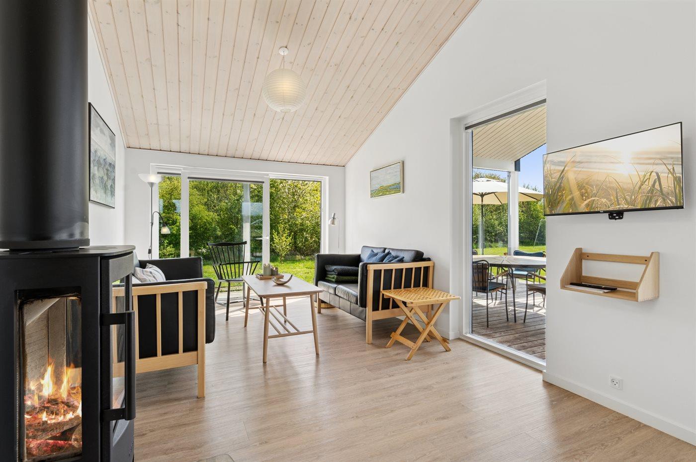 Sommerhuset egner sig til 6 personer. Ferieboligen er på 96 m² og er bygget i 2019. Det er ikke tilladt at medbringe husdyr. Ferieboligen er udstyret med 1 energivenlig luft til luft varmepumpe. Ferieboligen har vaskemaskine. Tørretumbler. Frysekapacitet på 60 liter. Der er desuden brændeovn. Til de små er der 1 stk. barnestol.