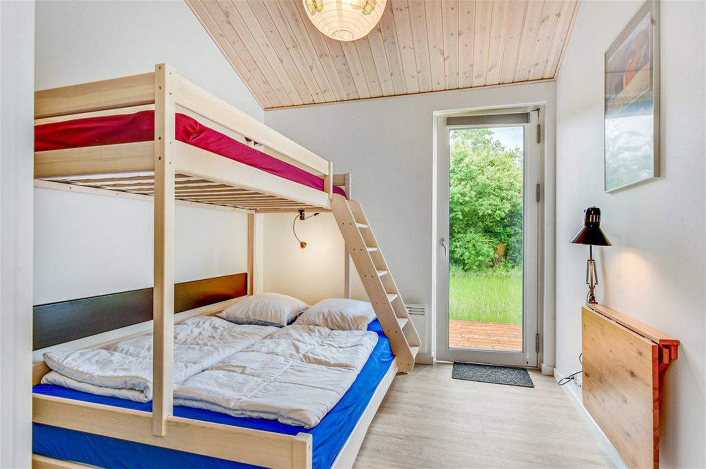 Der er i alt 3 soveværelser. Sovepladserne fordeler sig på: 2 sovepladser i dobbeltseng. 1 soveplads i enkeltseng. 4 sovepladser i køjesenge. Derudover er der 1 stk. barneseng.