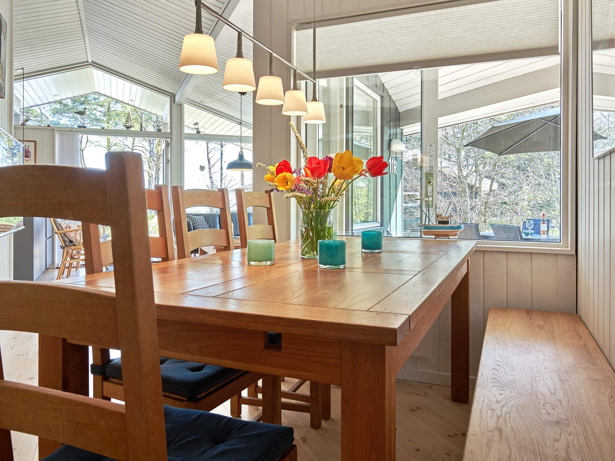 Fra stuen har I direkte udgang til en dejlig stor træterrasse, hvor I kan nyde ferien fra morgen til aften. Nærheden til havet og muligheden for en hurtig dukkert eller en dejlig lang dag på stranden gør huset ekstra attraktivt.