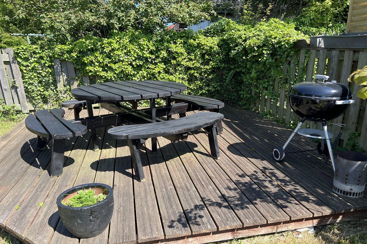 Dette sommerhus ligger på en indhegnet grund ganske nær Balka Strand. Til huset, som er pænt og moderne indrettet hører en stor træterrasse.