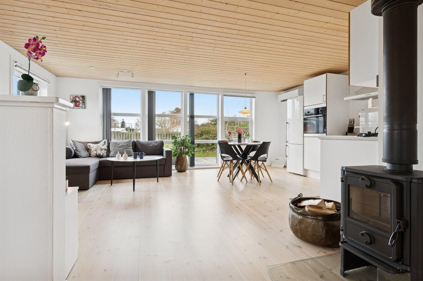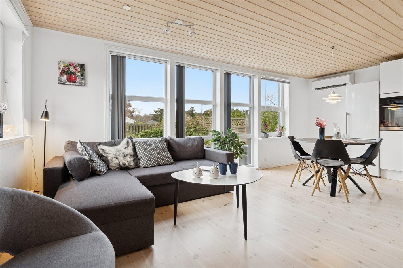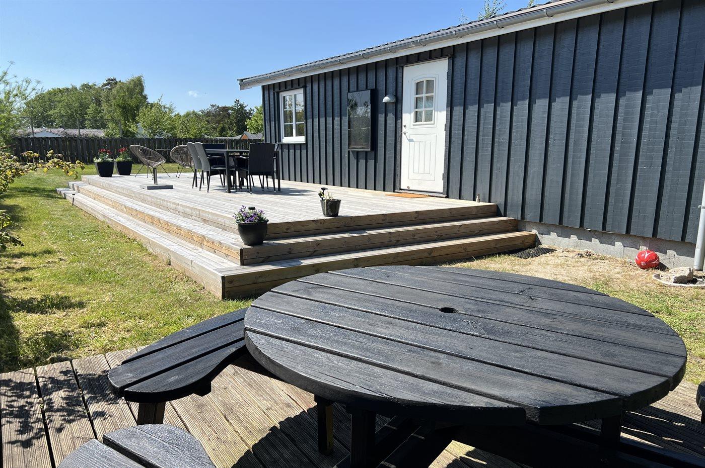 Moderne sommerhus nær Balka Strand med stor terrasse og energibesparende varmepumpe.