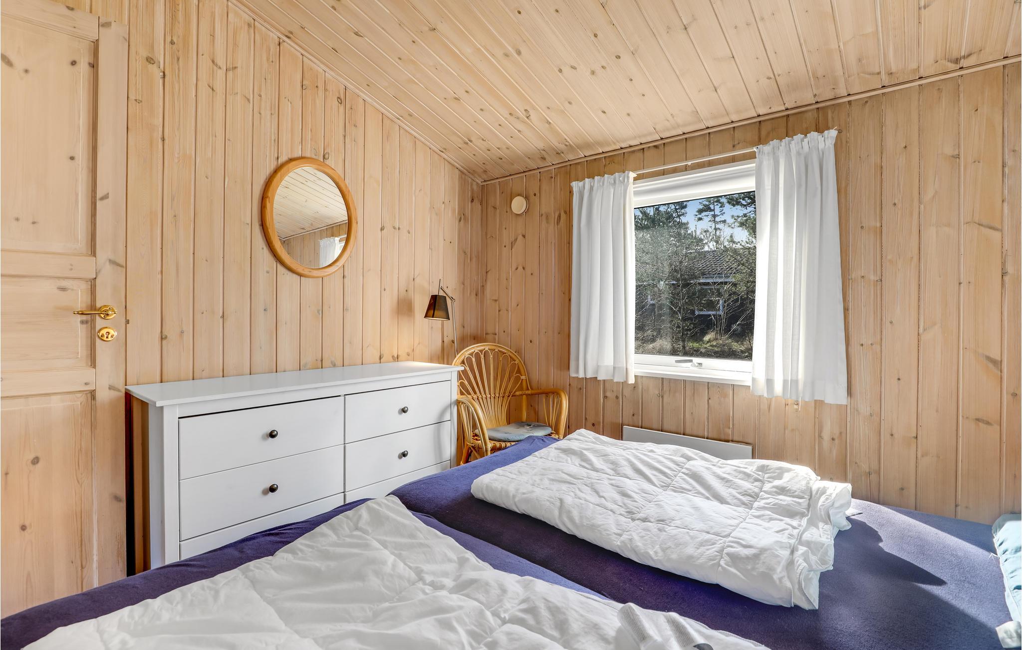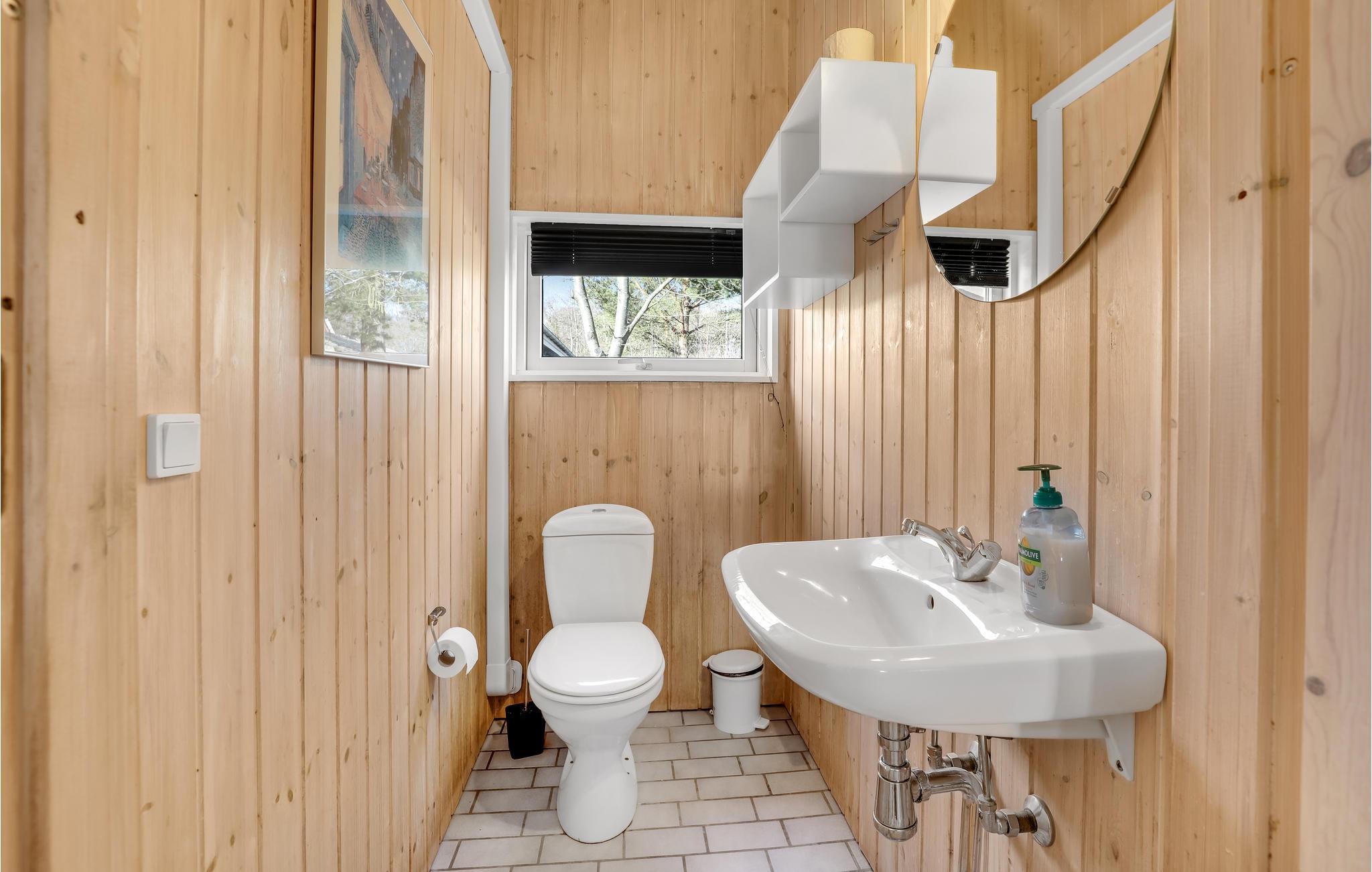 Velkommen til dette feriehus, der med sine trægulve, vægge- og lofter i kombination med åbent til kip i stue og køkken skaber en rummelig, lys og hyggelig atmosfære. I stuen kan I slappe af og se fjernsyn, lytte til musik eller bare hyggesnakke. I forbindelse hermed ligger spisepladsen og det åbne køkken. Huset badeværelse er lidt af et højdepunkt. Det er nemlig udstyret med gulvvarme, vaskemaskine og tørretumbler og sidst men ikke mindst dejlige wellnessfaciliteter i form af spa og sauna. Derudover består huset af et gæstetoilet og fire soveværelser.