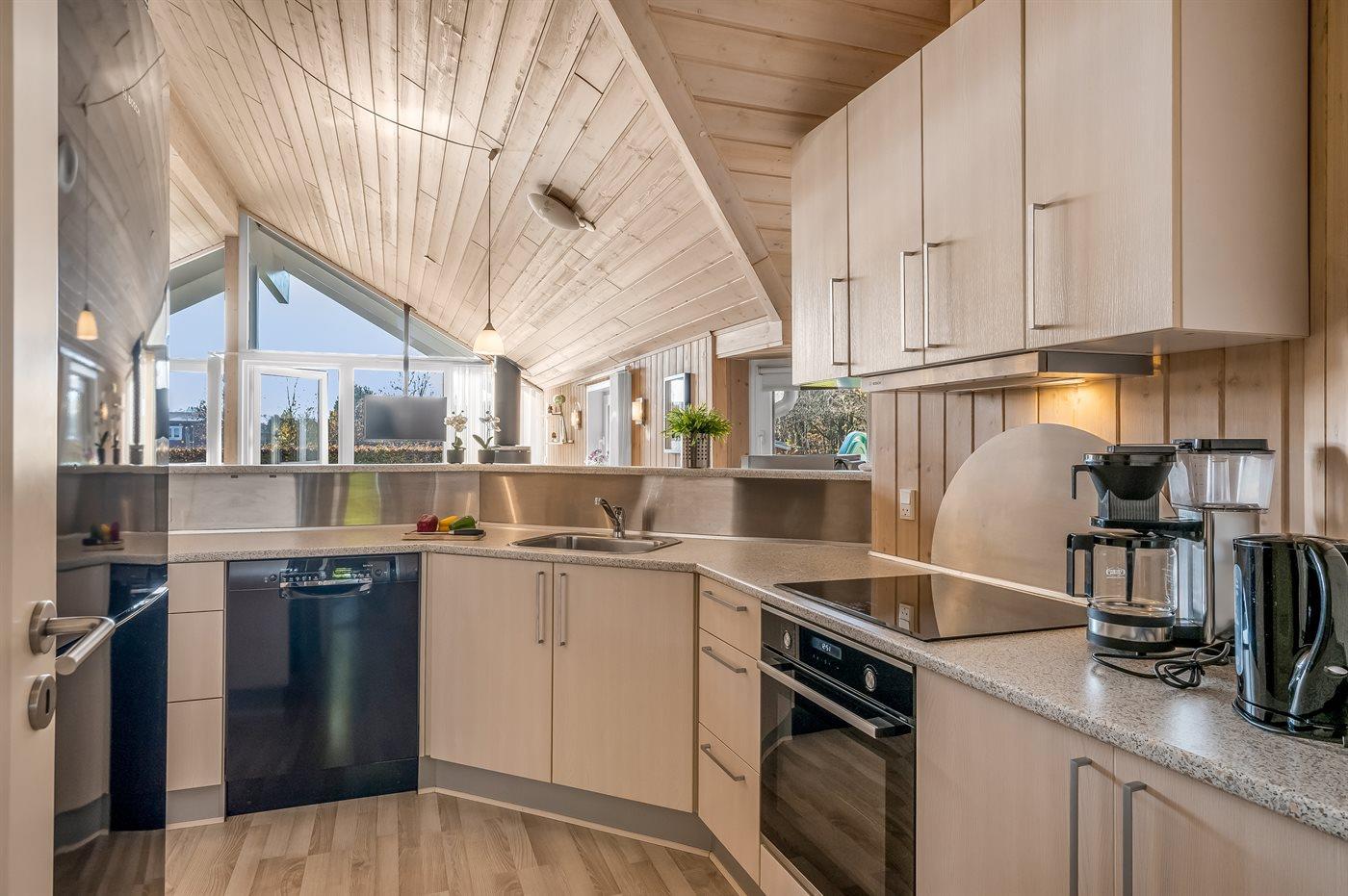 Køkkenet er udstyret med 1 køleskab. Der er 4 induktionskogeplader, varmluftovn, mikrobølgeovn samt opvaskemaskine.