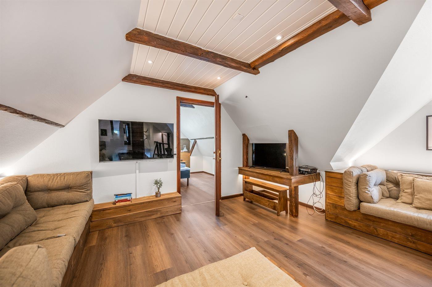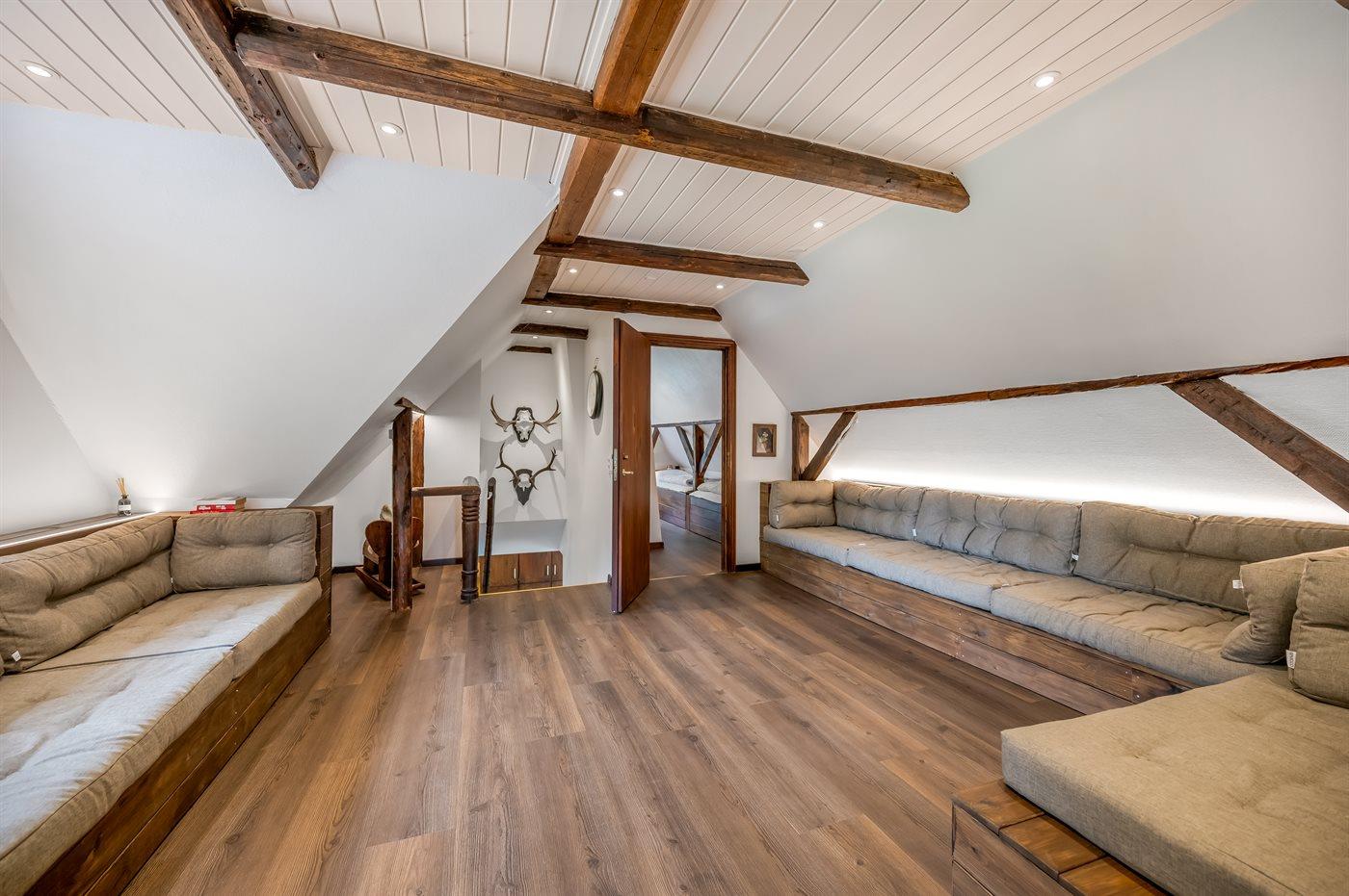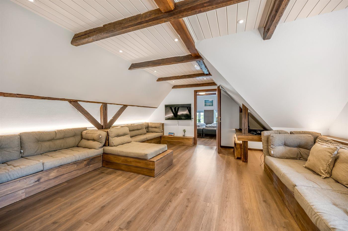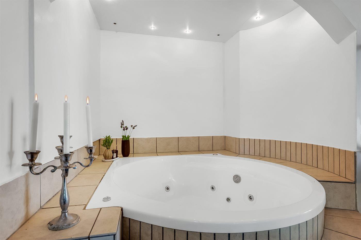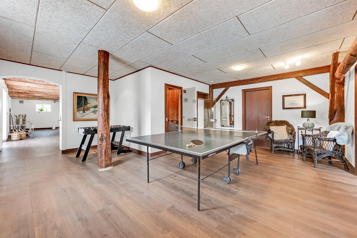 De synlige trækonstruktioner, de smukke stengulve og det hvælvede loft i poolafdelingen giver huset en varm og rustik atmosfære. Den rummelige spisestue med plads til 24 personer ligger i åben forbindelse med det veludstyrede køkken.