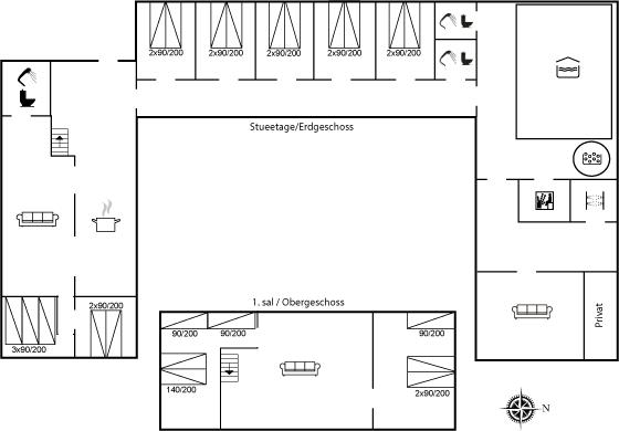 Huset rummer også et aktivitetsrum med bordtennis samt et TV med danske og tyske kanaler – herunder TV2. På 1. sal findes et hyggeligt loungeområde med TV og PlayStation, hvor både børn og voksne kan samles til afslapning og underholdning.