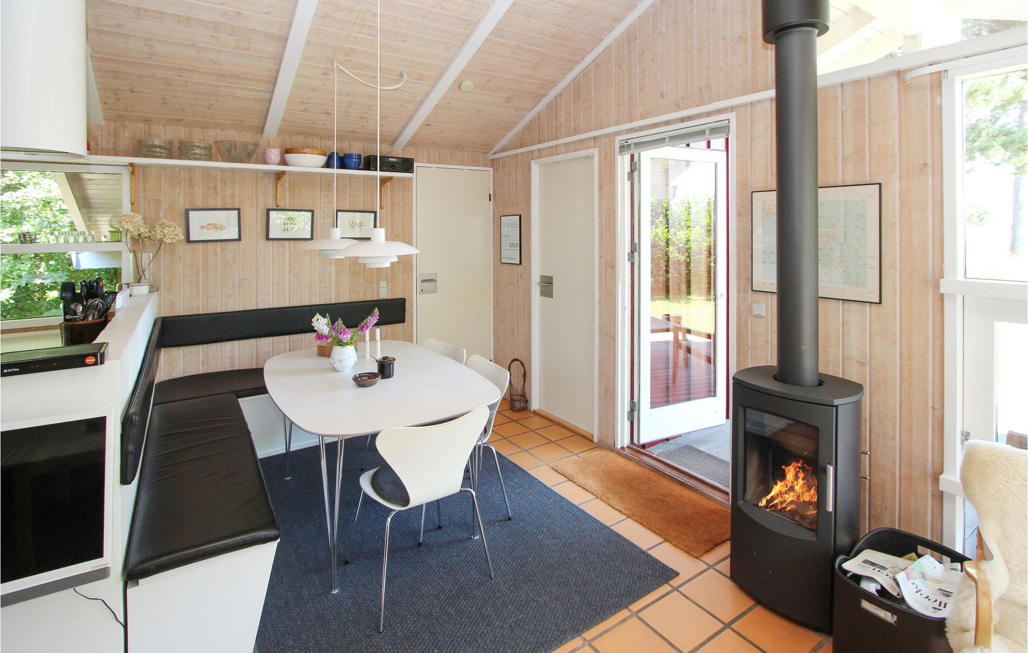 Dette lyse og hyggelige hus byder gæsterne velkommen tæt på fjorden. Glæd jer til lange aftener sammen i den rummelige sofa i stuen, ledsaget af den hyggelige knitren fra pejsen. Udenfor kan I slappe af når som helst på dagen på den solrige terrasse med en smuk udsigt over vandet. Der er kun en kort gåtur fra hytten til fjorden.