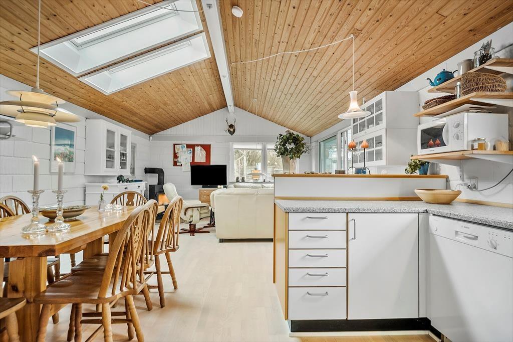 Nyd livet udenfor: Der bydes på frisk luft og et lille havkig fra havestuen og med meget kort gåafstand til stranden, er der god mulighed for at nyde havluften og en strandtur med børn og hund. Der er desuden en dejlig terrasse, hvor ferien kan nydes i fulde drag. Ved feriehuset er der havemøbler, udendørs bruser, en plads med udekøkken og et gyngestativ til børnene. Haven er helt lukket, så du kan også trygt medbringe din hund, og området er desuden perfekt til skønne gåture langs kysten