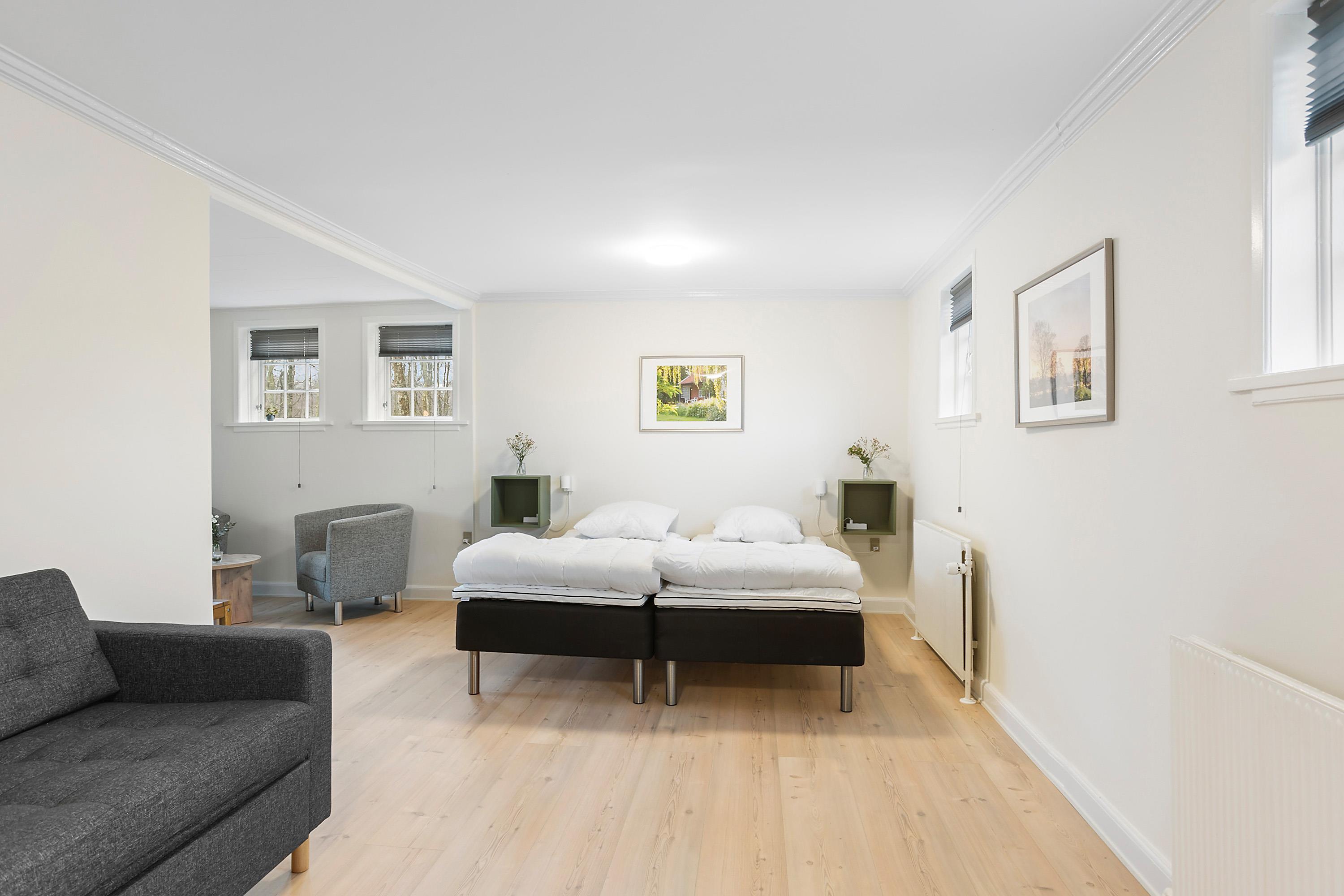Boligen består af to separate fløje med i alt 9 soverum, fire nye badeværelser, opholdsstue, nyt Køkken/alrum med plads til op mod 45 personer.