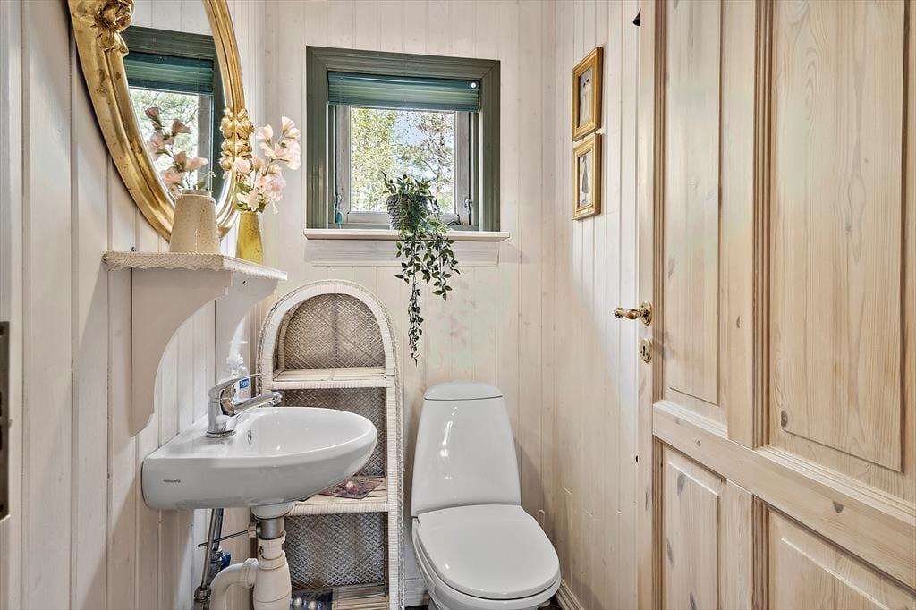 Sommerhuset er sådan en slags, du straks kan føle dig godt tilpas i, for rummene er fyldt med komfortabelt møblement og har en rar atmosfære. På helt klassisk manér er der brændeovn i stuen, og udover sofaarrangement, spisebord og et åbent køkken finder du også en dejlig alkove i opholdsrummet – den er helt perfekt til en god middagslur, og om natten fungerer den også som et glimrende supplement til sengene på de to soveværelser. Planløsningen byder på praktisk vis på et badeværelse og et ekstra toilet, såalt i alt fungerer huset som en skøn feriebolig for fire personer.