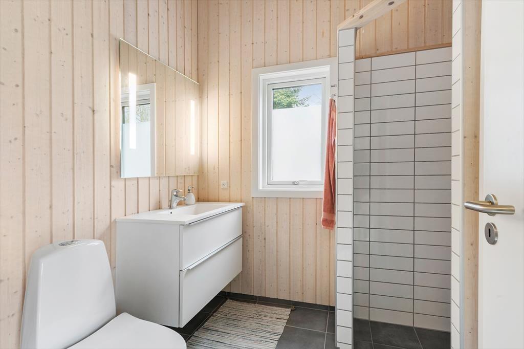 Badeværelset er moderne og veludstyret med alt det nødvendige.