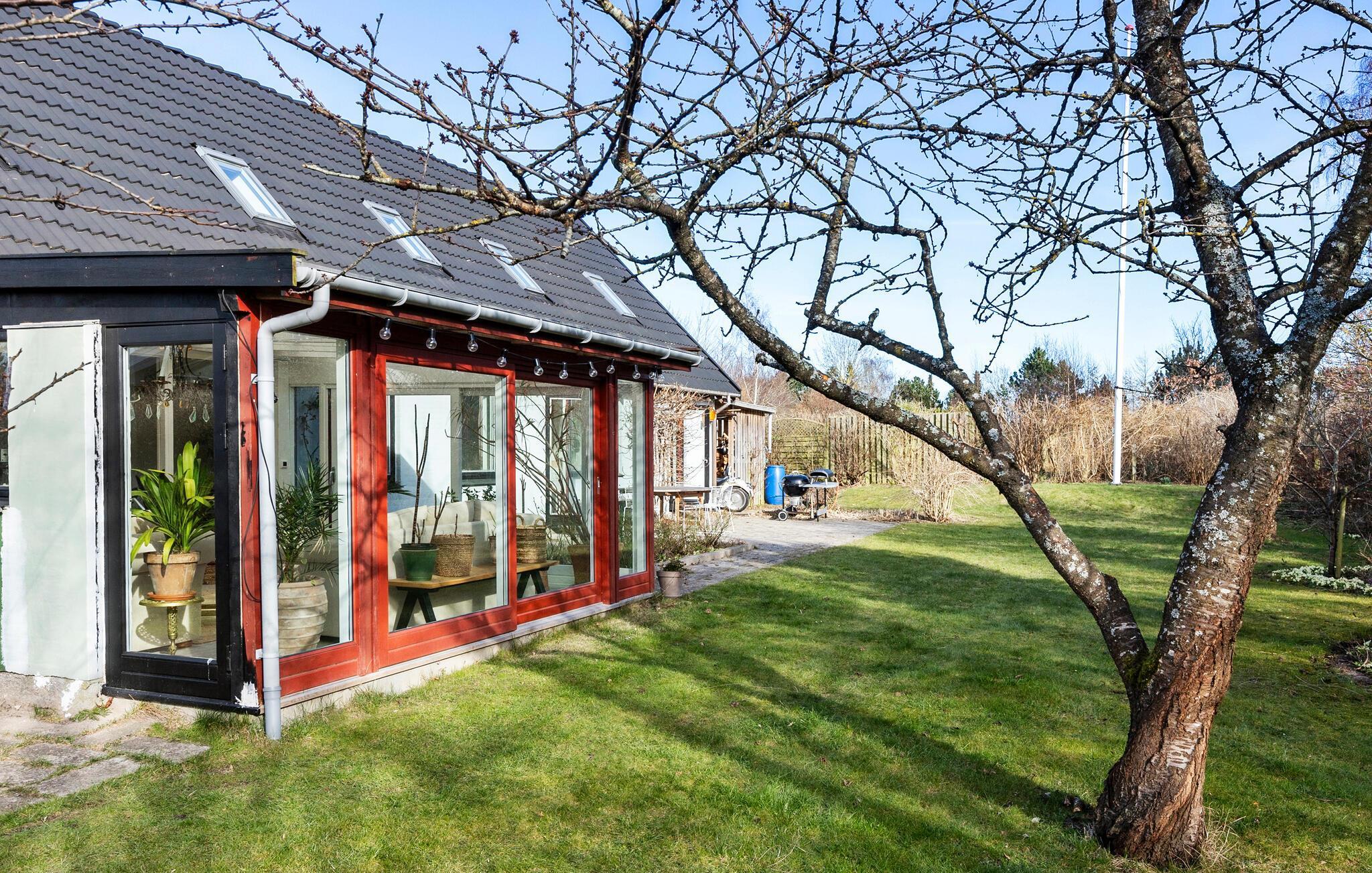 Haven giver jer et herligt uderum. Sæt jer til rette på den solrige terrasse med en kop kaffe fra morgenstunden og glæd jer til sommerdagene, hvor grillen simrer af lækre retter. Børnene får god plads til fangeleg på græsplænen.