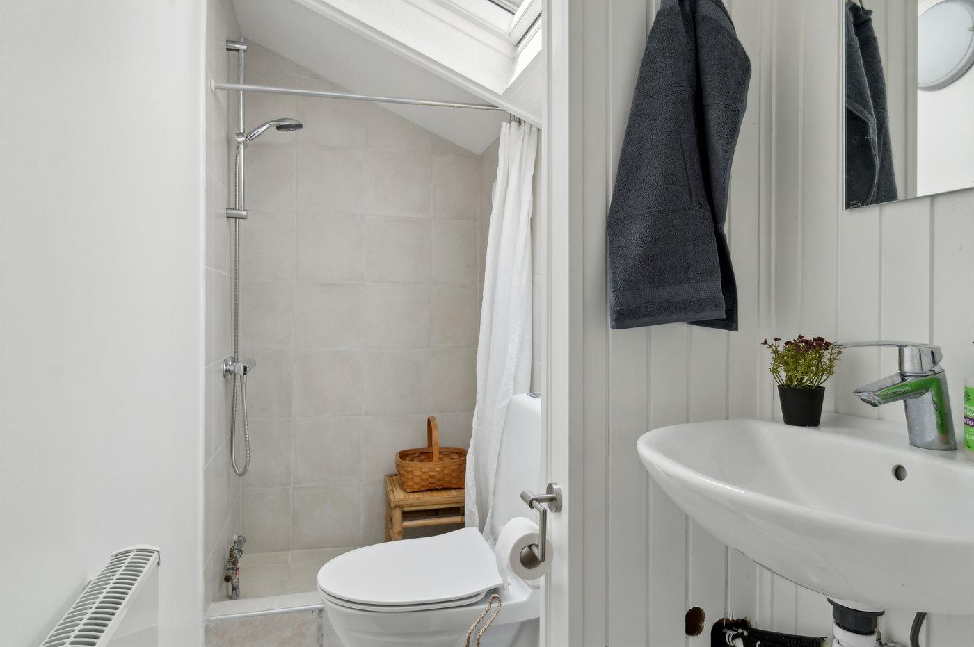 Der er 1 badeværelse med bruseniche og 1 toilet.