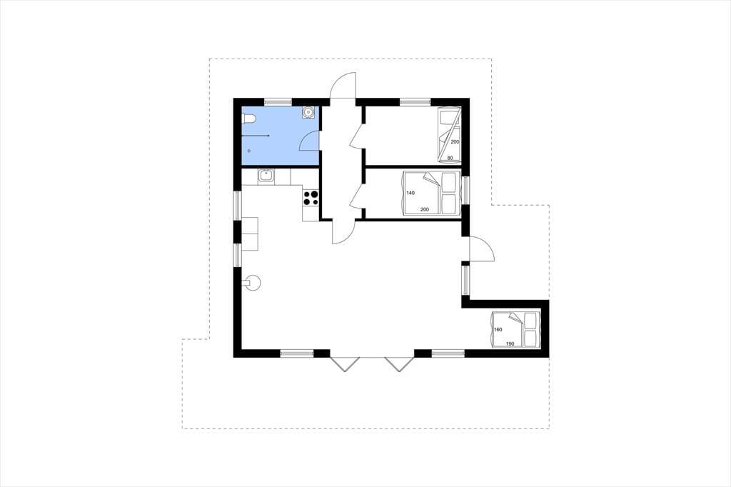 Allerede når I træder ind ad døren, mærker I den lyse og venlige atmosfære, som fylder rummene. Sommerhuset er hyggeligt indrettet med sans for det enkle og afslappede, så her er det nemt at finde ferieroen. Det åbne opholdsrum samler køkken og stue i ét, og her kan hele familien være sammen – også selvom nogle spiller kort ved spisebordet, mens andre smider sig i sofaen med en god film eller bog. Brændeovnens knitren og den varme glød bidrager til den særlige feriestemning, når dagene er lidt kølige, og i sommerens varme måneder bliver huset lyst og luftigt med dørene åbne mod terrassen. På hemsen kan børnene finde deres eget lille fristed – og samtidig lade blikket vandre ud over landskabet, som breder sig så fredfyldt udenfor vinduerne.