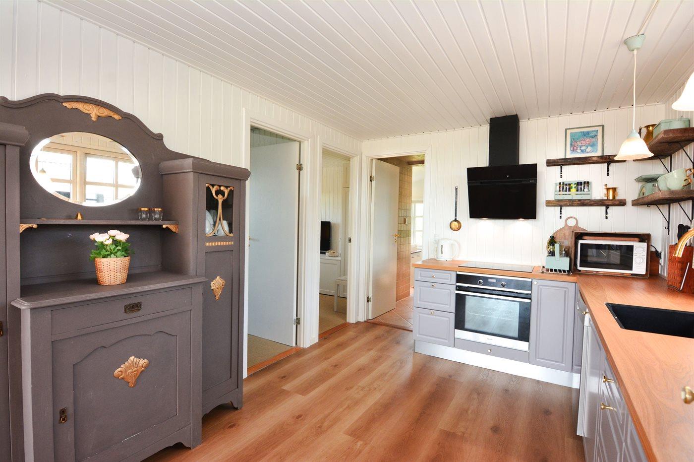 Køkkenet er udstyret med 1 køleskab. Der er 4 keramiske kogeplader, varmluftovn, mikrobølgeovn samt opvaskemaskine.
