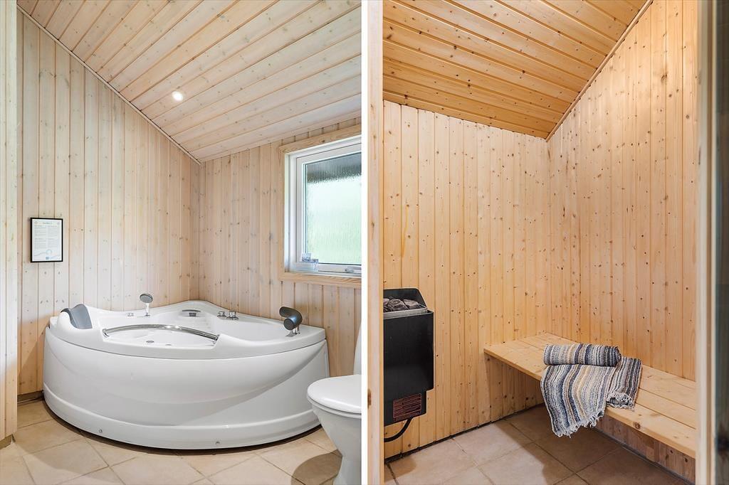 Det 120 m2 store sommerhus er indrettet, så I kan hygge jer med at spille pool, Playstation og bordfodbold, lege på hemsene og i det hele taget fylde dagene med sjov og socialt samvær. Samtidig er der taget højde for feriens mere rolige stunder: I den lyse og indbydende stue er sofaerne for eksempel et herligt sted at slå sig ned med en god bog eller en film på fladskærms-tv’et – hvis ikke du ligefrem tager en middagslur i et af de fire soveværelser eller slapper helt af med et varmt spabad og en tur i saunaen. Badeværelser er der for øvrigt to af, og alt i alt passer planløsningen godt til otte personer, så I for eksempel kan holde ferie to familier sammen.
