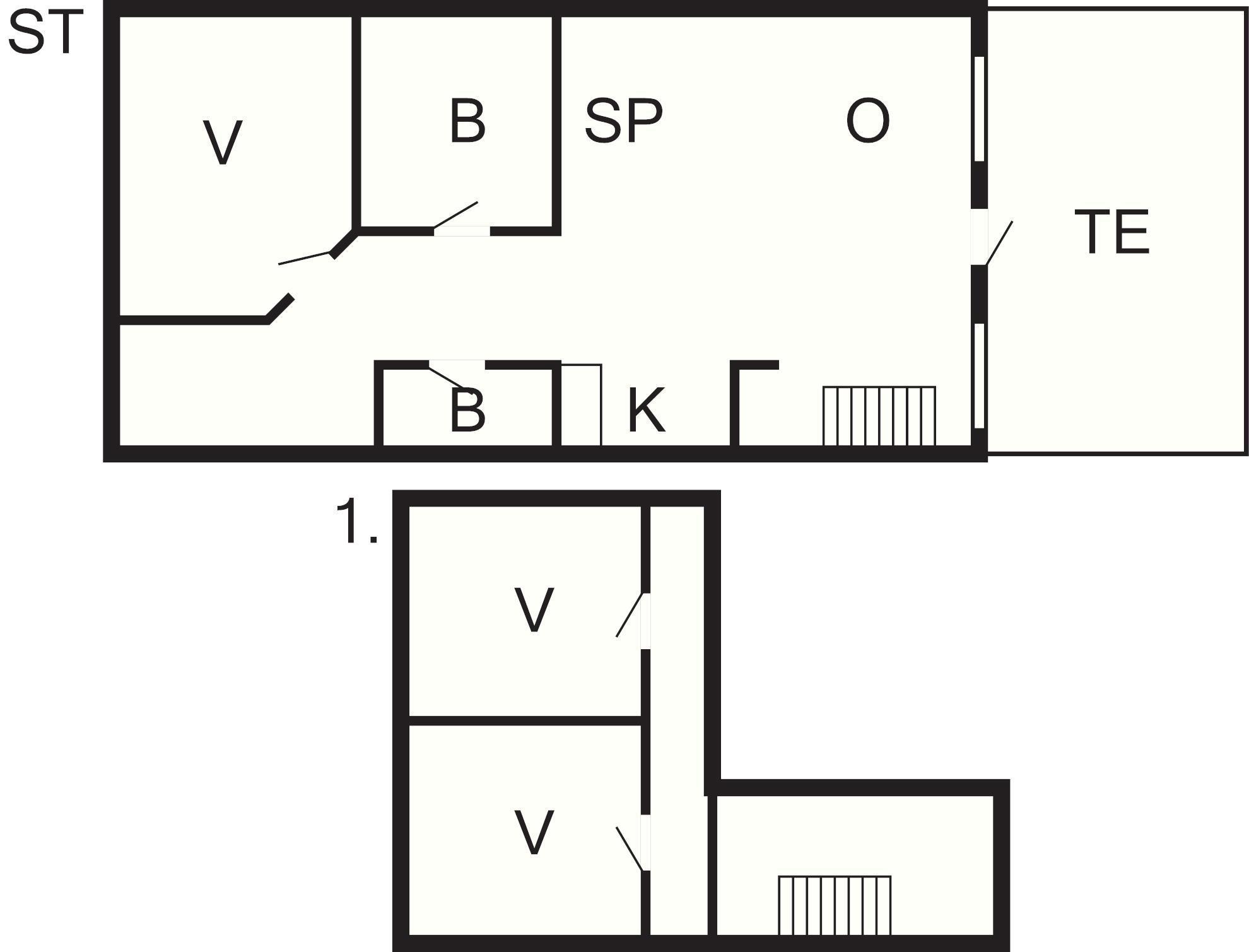 Denne charmerende ferielejlighed er beliggende nær Tranum Strand og strækker sig over to etager, og tilbyder et komfortabelt og moderne sted til en afslappende kystferie. Lejligheden har tre soveværelser - et i stueetagen og to på øverste etage - hvilket gør den ideel til familier eller små grupper. I stueetagen er der et lyst køkken og opholdsstue i åbent plan med direkte udgang til terrassen, et brusebadeværelse og et separat toilet. Lejligheden er velholdt og omhyggeligt indrettet til et behageligt ophold.