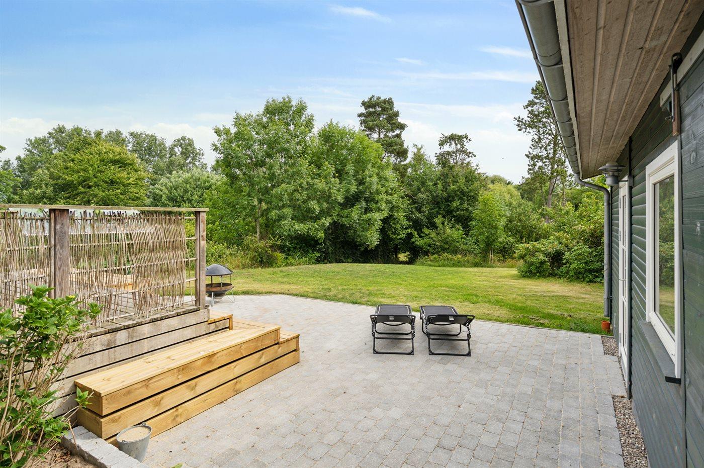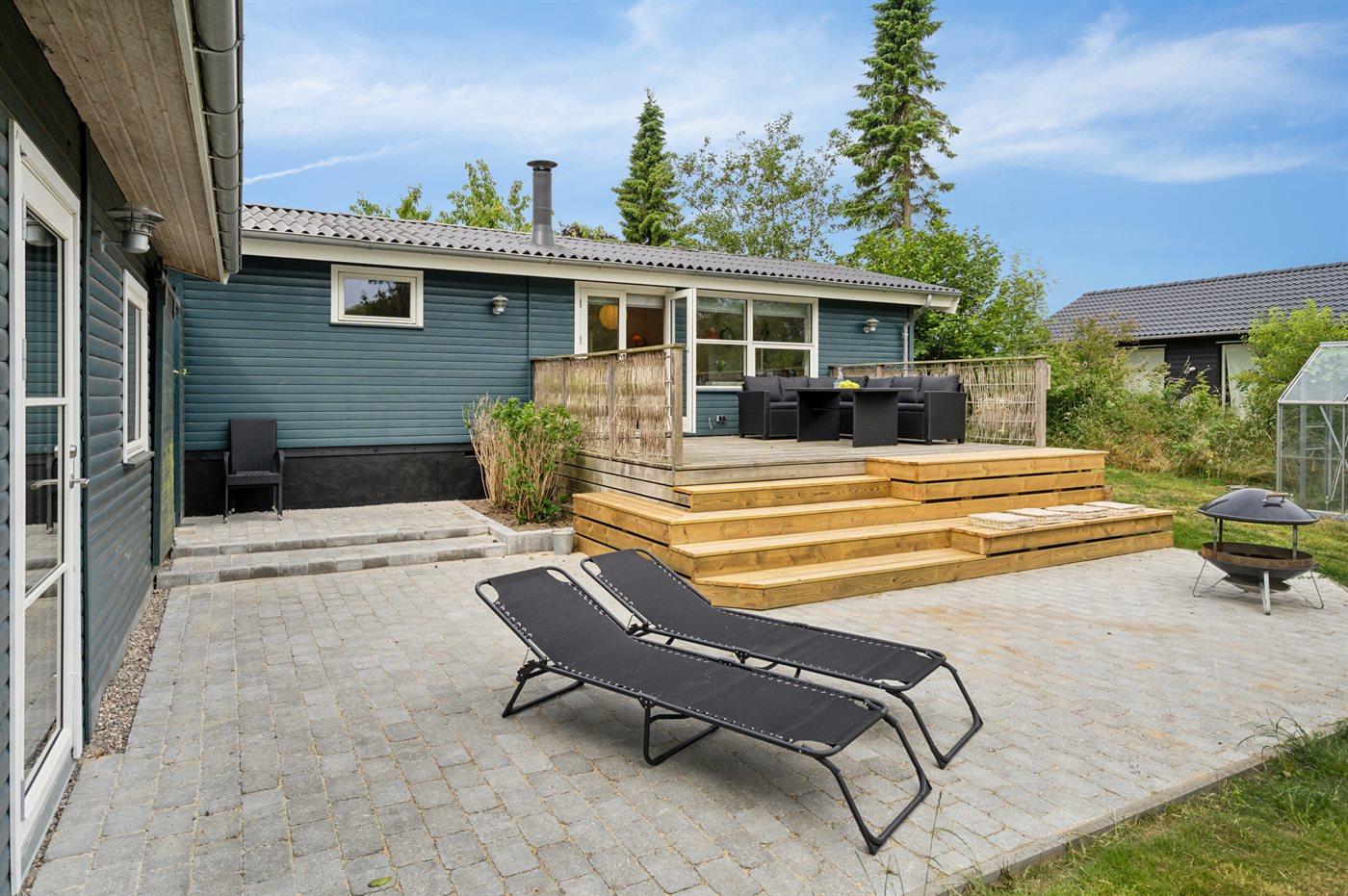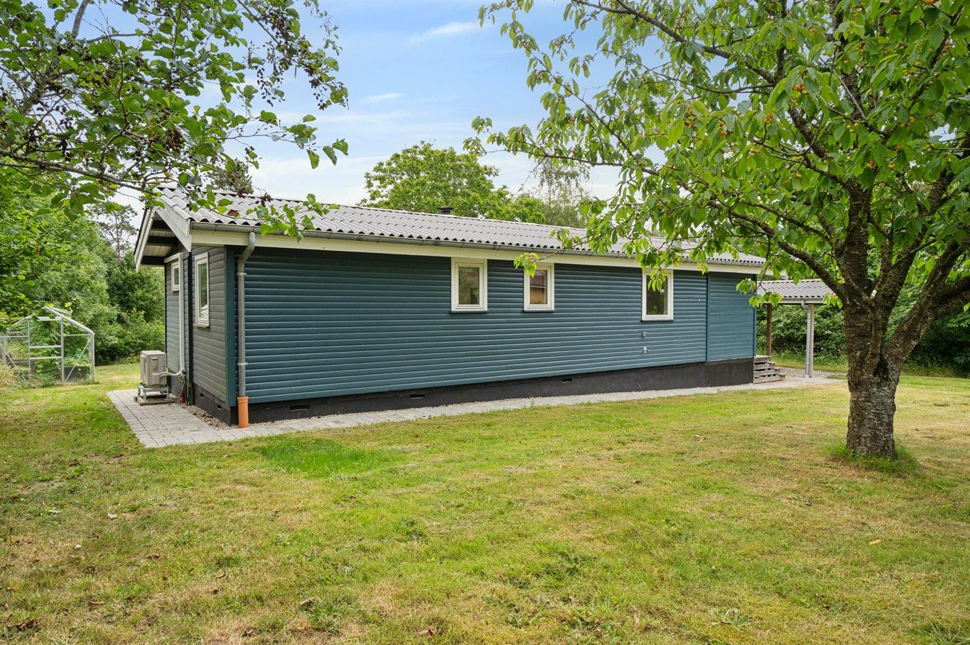 Ferieboligen er beliggende på en 1204 m² stor havegrund. Der er 225 m til fjorden. Nærmeste forretning er beliggende i en afstand af 3900 m. Der er en golfbane i en afstand af 18900 m. Til ferieboligen hører 50 m² terrasseareal. Der er mulighed for at tilberede maden udendørs i udekøkkenet. Grill til rådighed. Der er carport til rådighed. Parkering ved ferieboligen.