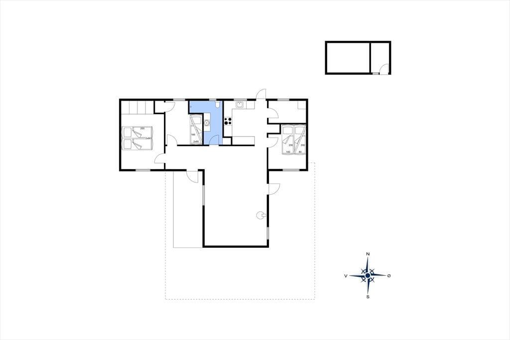 Når du træder ind i sommerhuset, bliver du mødt af et rummeligt og lyst opholdsrum, hvor de store vinduespartier skaber et naturligt lysindfald og en følelse af åbenhed. Stuen er indrettet med komfortable møbler og en brændeovn, der inviterer til hyggelige aftener med spil og samtaler. Det åbne køkken ligger i forbindelse med stuen, så du kan tilberede måltider uden at gå glip af samværet. Soveværelserne er indrettet med fokus på afslapning, og huset emmer af ro og harmoni, der får dig til at føle dig hjemme fra første øjeblik.