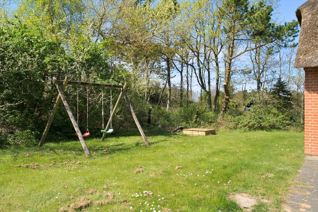 Huset ligger på en stor dejlig grund omkranset af træer og buske som giver godt med læ. Nyd mange hyggelige timer udenfor på den store grund hvor I også finder både gynge og sandkasse til børnene, eller sæt gang i en fodboldkamp for hele familien. Tag morgenmaden med udenfor på den sydøstvendte terrasse og nyd solens første stråler der skinner så dejligt og himlen der bliver et væld af flotte farver. Tag aftensmaden med udenfor og lav den på grillen inden I nyder den under åben himmel.
