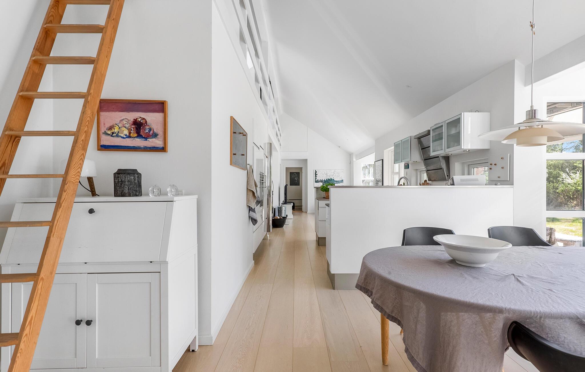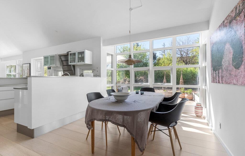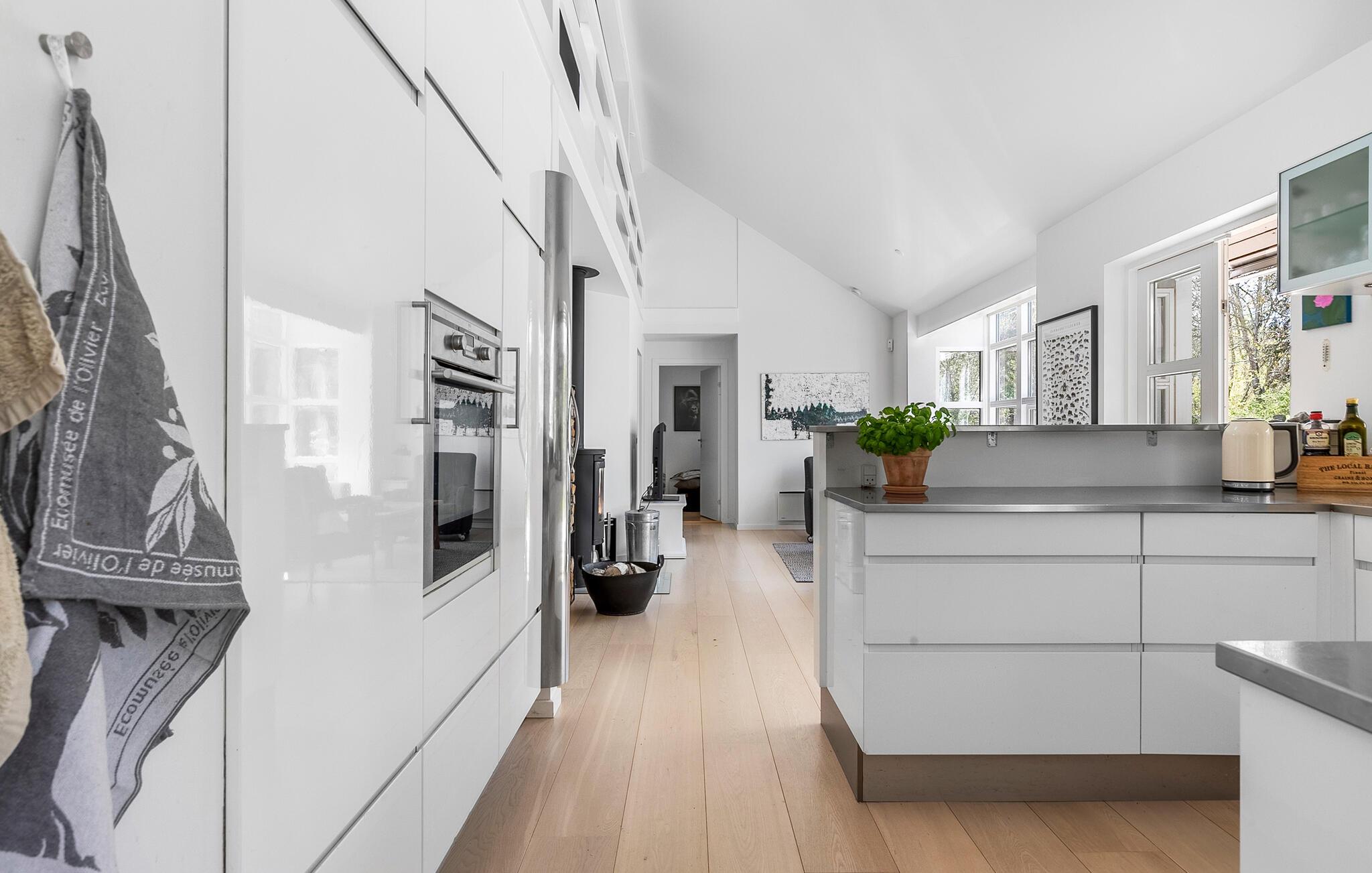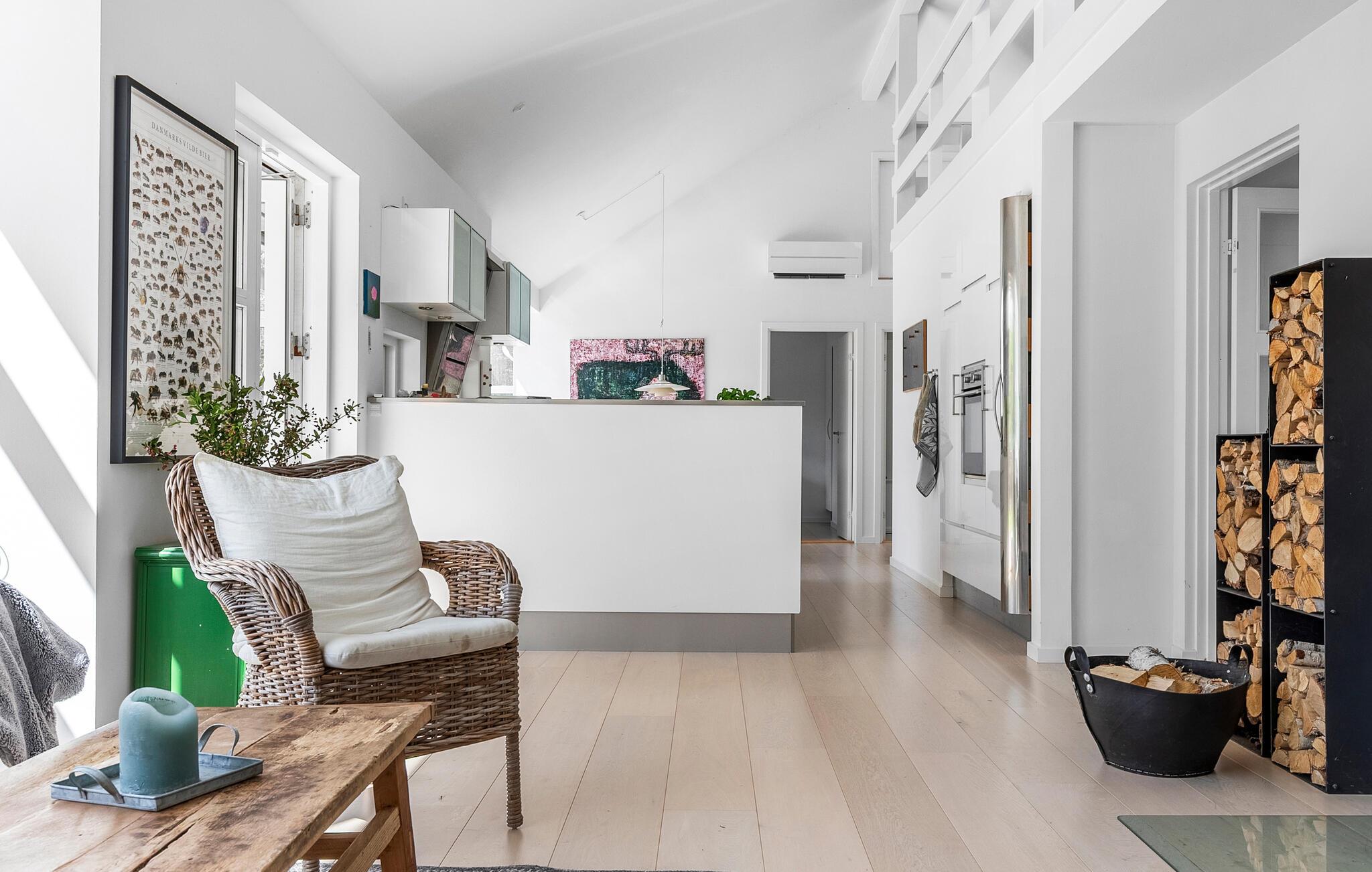 Begynd dagene med at tilberede en afslappet morgenmad i det åbne køkken, og nyd stilheden i de tidlige timer. Den lyse opholdsstue med dens venlige indretning lægger op til at tilbringe sociale stunder på de komfortable sofaer. Læs en fængslende bog, eller brug tid sammen med familien ved at spille et spil bræt- eller kortspil. Grundplanet sikrer, at to familier kan have hver sin ende af huset med fællesarealer I midten. På kølige dage giver byder brændeovnen på hyggelig varme og giver rummet en særlig hyggelig atmosfære. Slap af i saunaen, så tit I har lyst.