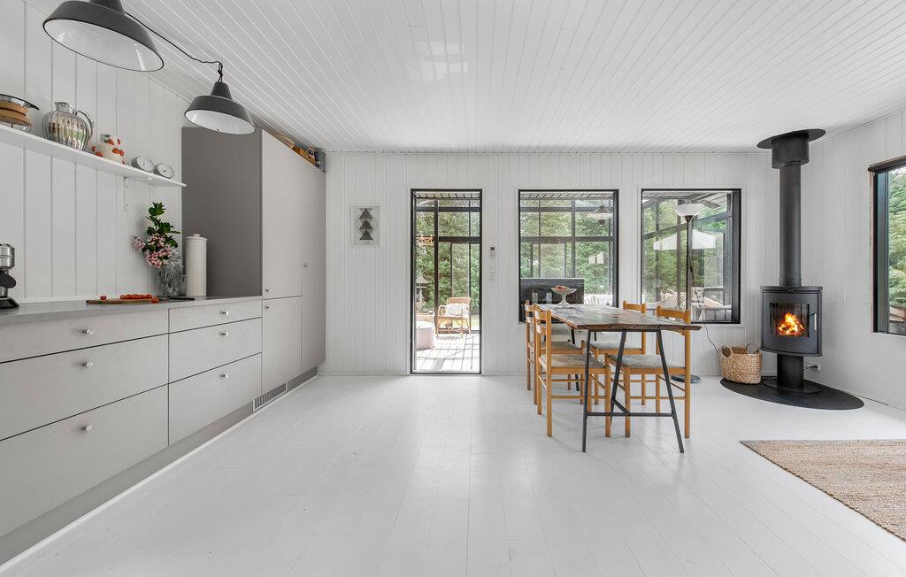 Stilrene løsninger, ferieidyl og rolige omgivelser ... Der er lagt op til nogle skønne feriedage i Vejby. Dette sommerhus emmer af komfort og elegance både ude, inde og i det smukke orangeri, hvor I kan nyde en kop kaffe eller et glas vin, når dagen går på hæld. Tænd op i brændeovnen på en kølig dag og giv jer god tid til at sammensætte dagens måltider i det indbydende køkken.