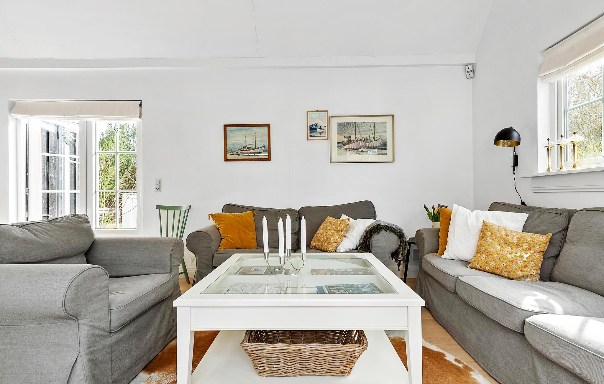 I dette sommerhus finder hele familien en velkommen pause fra hverdagen. Begynd dagene med en afslappet morgenmad ved det elegante spisebord, mens dagen langsomt vågner udenfor. Det lyse opholdsområde med komfortable siddepladser lægger op til afslapning, ideelt til stille læsning eller at spille spil sammen. på kølige dage skaber brændeovnen en behagelig atmosfære. Til særlige velvære-øjeblikke er der en sauna og et spabad til rådighed.