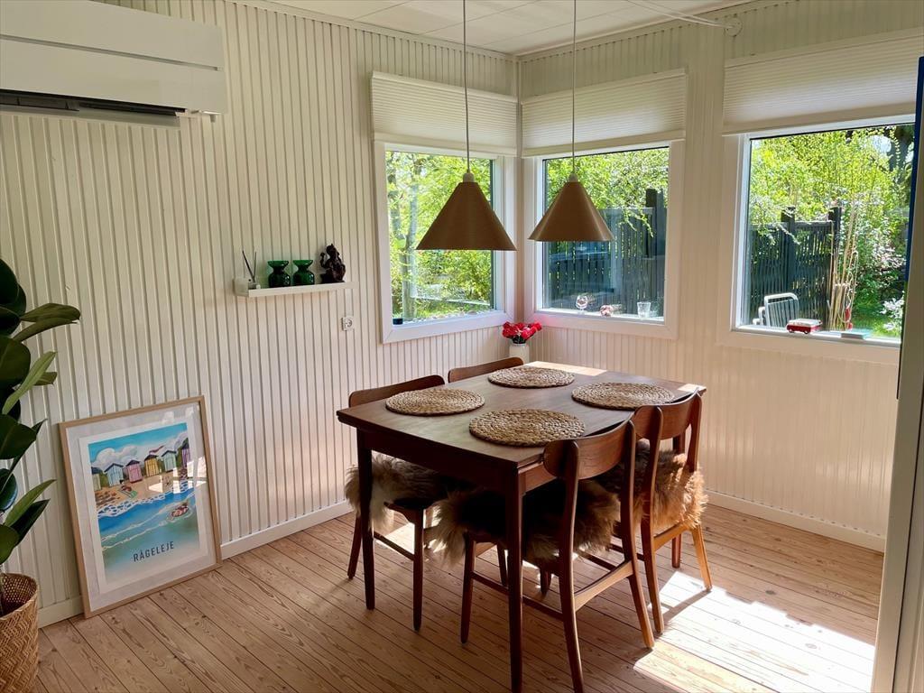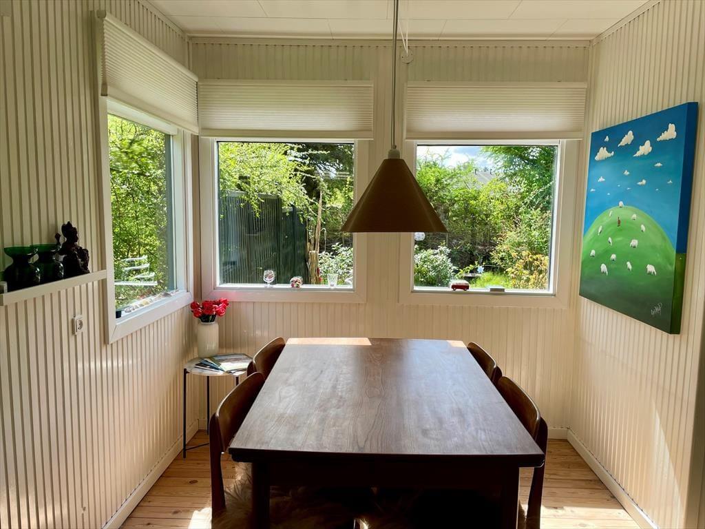 Sommerhus i Vejby, Nordsjælland, med plads til 6 voksne og 2 husdyr. Der er en hyggelig indretning med bl.a. brændeovn, og du finder desuden vaskemaskine og opvaskemaskine i boligen.