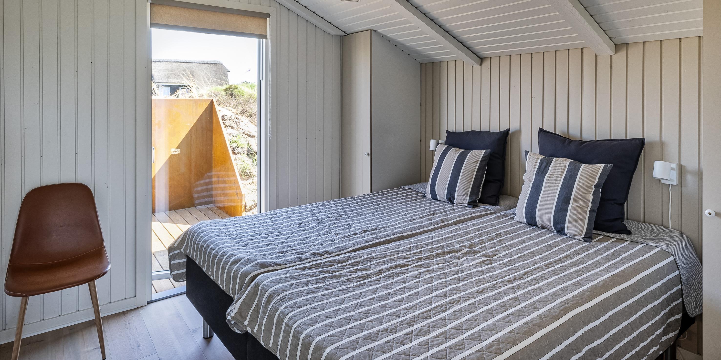 3 soveværelser. 2 med dobbeltseng 180x200 cm. 1 med 2 enkeltsenge (á 90x200 cm)