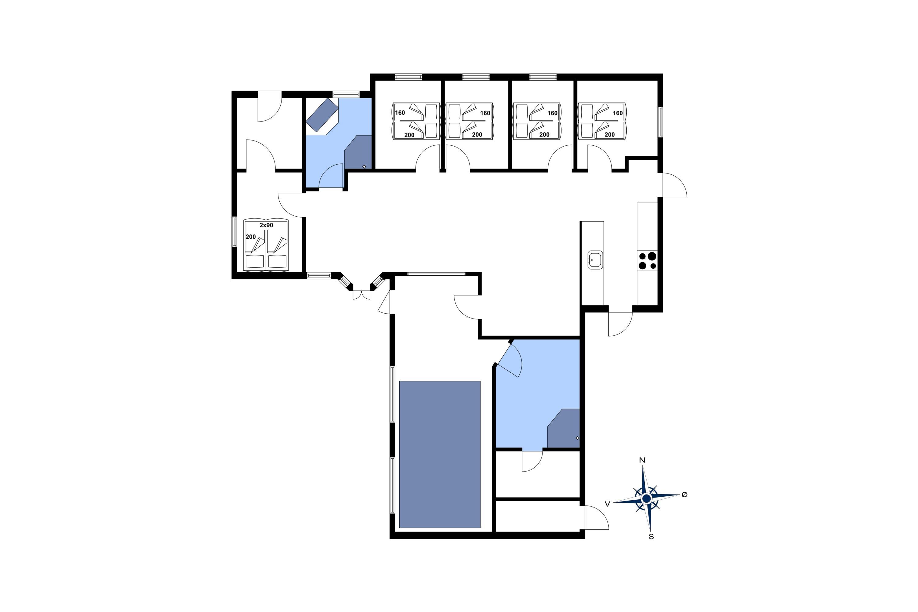 Dette rummelige sommerhus, renoveret i 2021, har plads til op til 10 personer fordelt i 5 soveværelser med dobbeltsenge DS+DS+DS+DS+DS. Her er både swimmingpool, spabad og sauna, så hele familien kan få en afslappende ferie. Poolområdet indbyder til timevis af leg, mens saunaen og spabadet sørger for ultimativ afslapning. Poolen måler ca. 4,3 x 3,6 x 1,5 meter. (Længde x bredde x dybde).