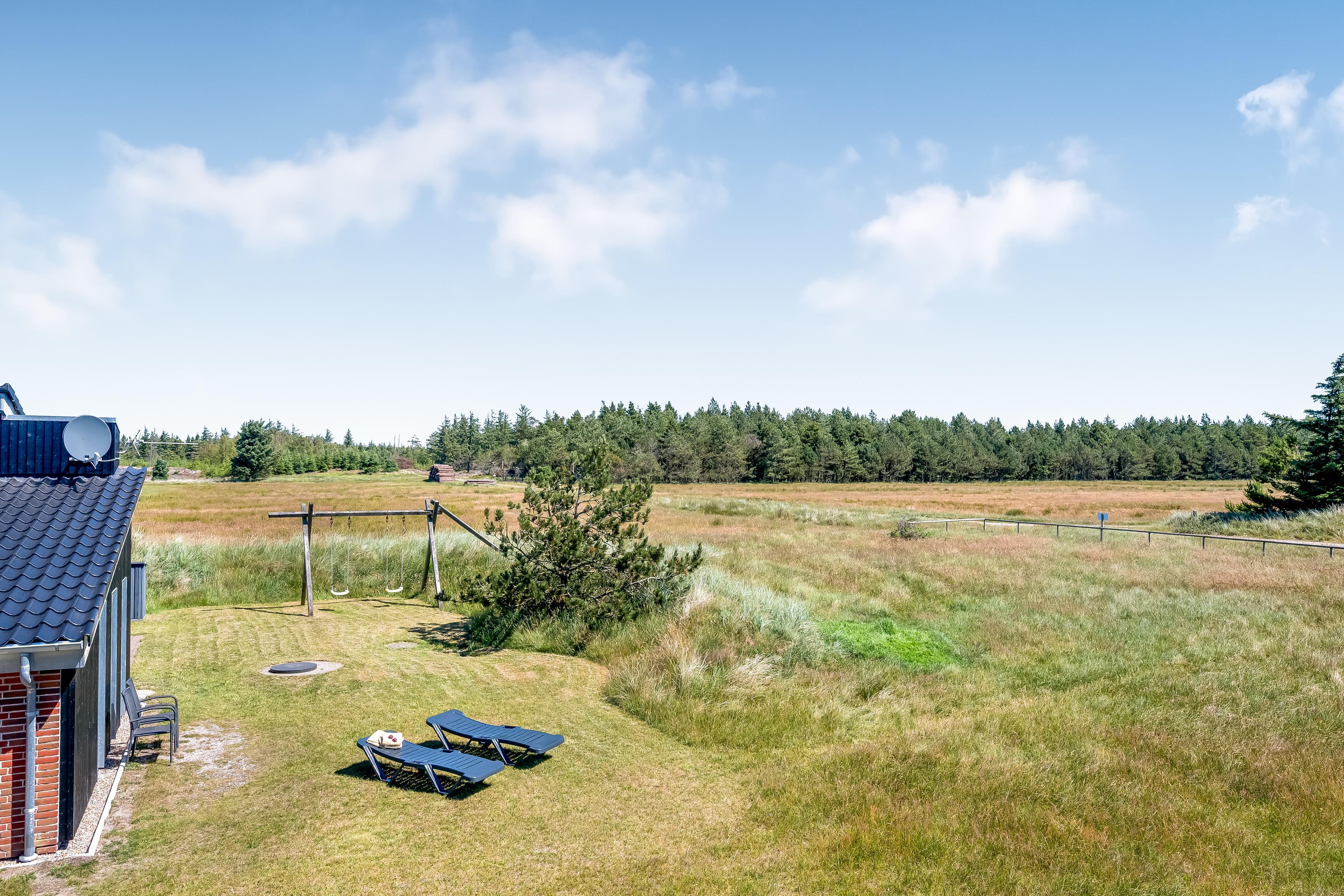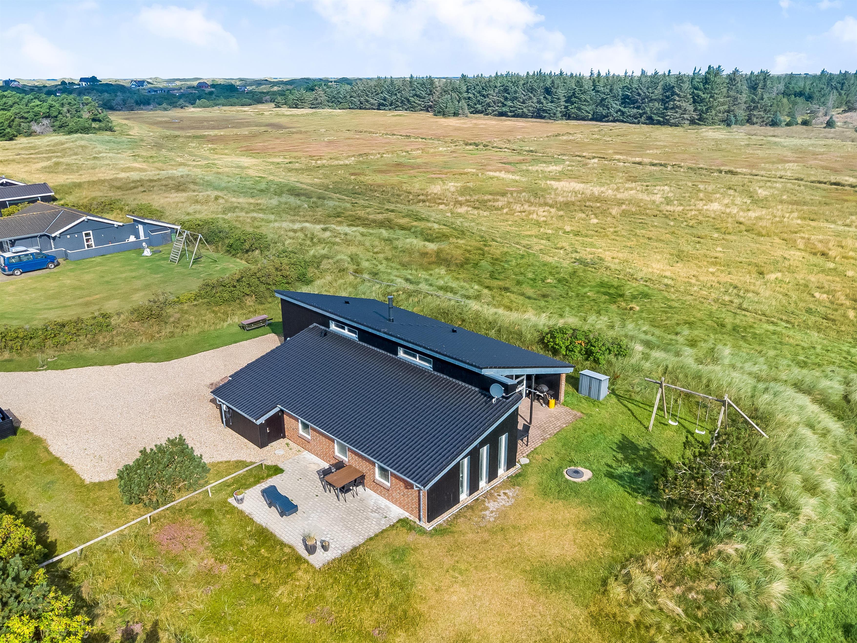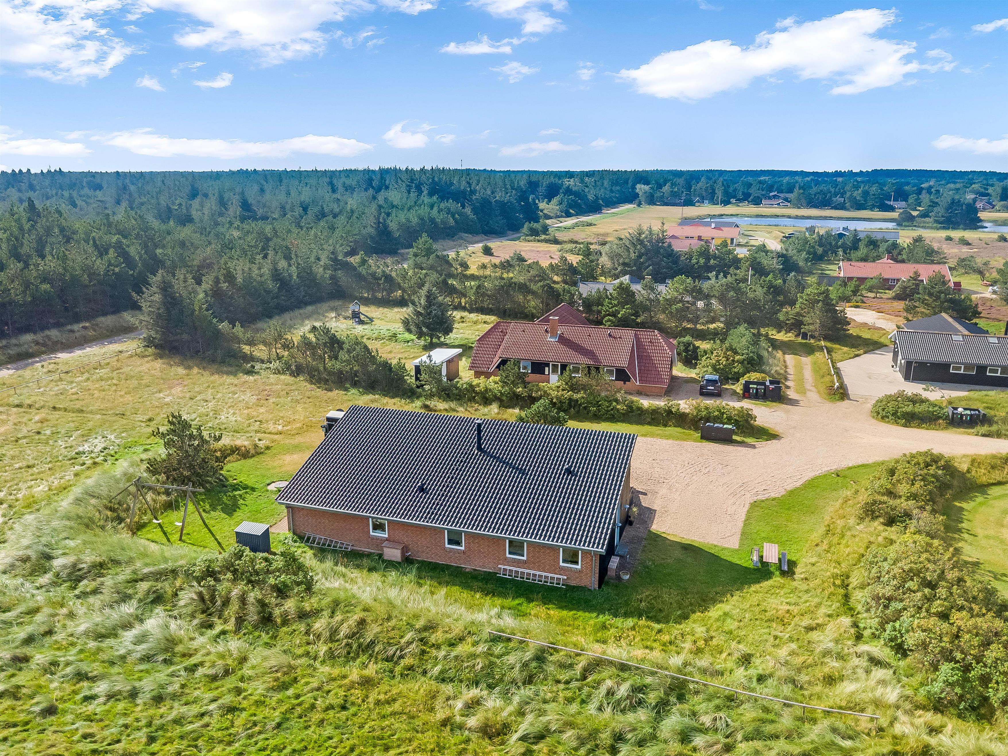 Lyst renoveret poolhus til 10 personer, beliggende i en lomme på en blind vej. Sommerhuset er placeret på en 2310 m2 stor naturgrund med ca. 1200 meter fra stranden. Grunden er op grænsende til skoven og cykelsti mod Filsø og Henne Strand. Bagved huset er der en stor græsmark hvor kronvildtet ofte græsser.