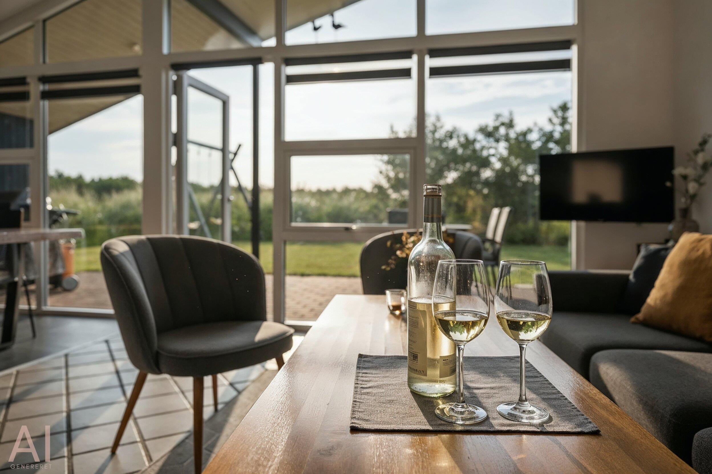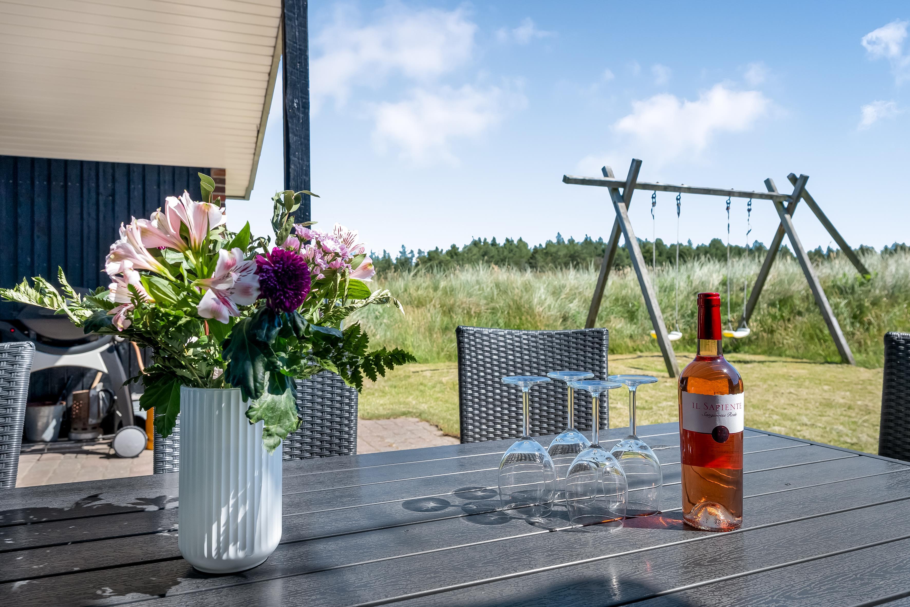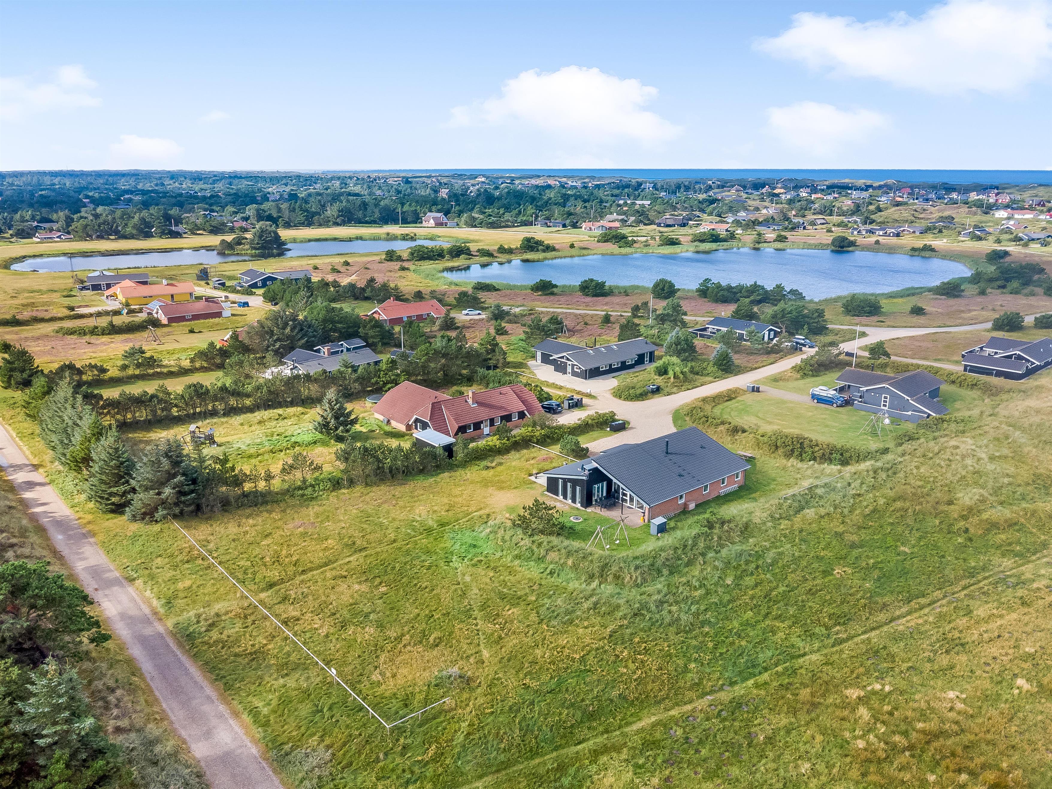 Lyst renoveret poolhus til 10 personer, beliggende i en lomme på en blind vej. Sommerhuset er placeret på en 2310 m2 stor naturgrund med ca. 1200 meter fra stranden. Grunden er op grænsende til skoven og cykelsti mod Filsø og Henne Strand. Bagved huset er der en stor græsmark hvor kronvildtet ofte græsser.
