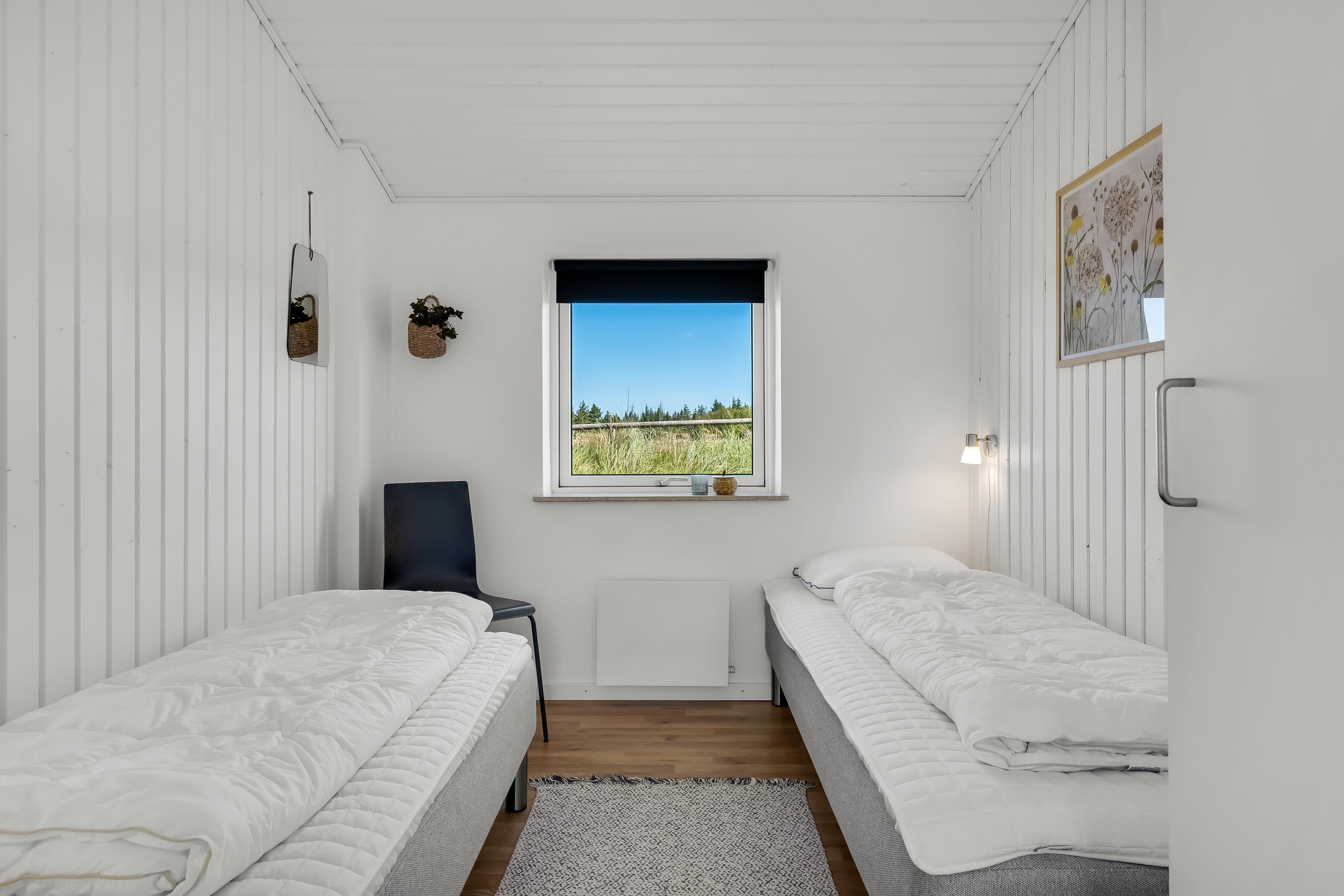 5 soveværelser. 2 med dobbeltseng 180x200 cm. 3 hver med 2 enkeltsenge (á 90x200 cm)