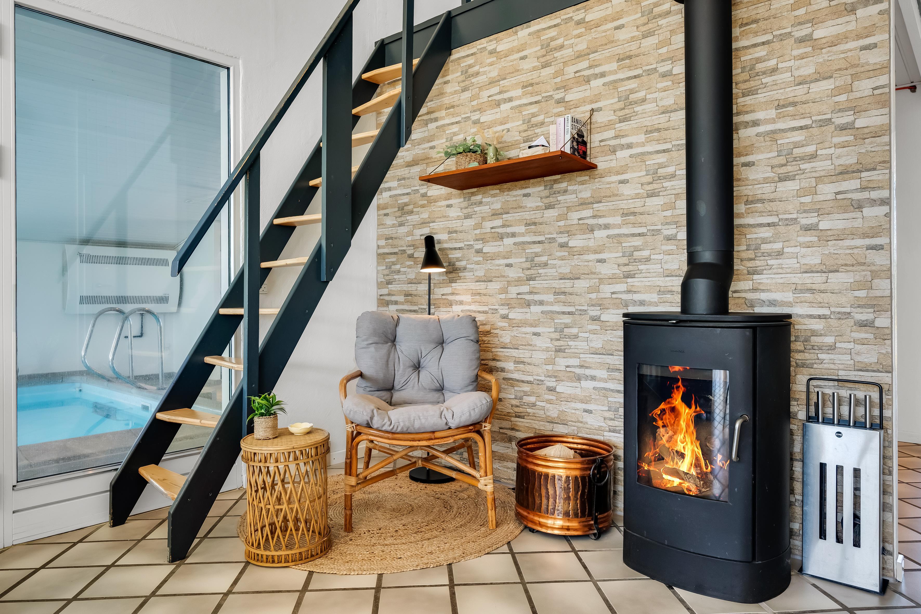 Huset indeholder: Indgang/fordelingsgang med garderobe der ligger i åben forbindelse med opholdsrummet. Det store opholdsrum er med loft til kip og med et stort vinduesparti mod øst. Stuen er med en hjørnesofa, hvorfra udsigten over mod skov kan nydes fra det store vinduesparti. Stuen har Smart TV med parabolantenne og DR-programmer, trådløs internet (100/100), varmepumpe, brændeovn samt en hems, og er et godt opholdsrum for børnene for uforstyrret leg og hygge. Nyt køkken i åben forbindelse med stuen. Køkkenet har køleskab, indbygningsovn, induktionskogeplade, emhætte 80 L skabsfryse. I forbindelse med køkkenet, er der en åben spiseplads med kig til skoven, fra det store vinduesparti og udgang til den delvis overdækkede terrasse. Fra stuen er der adgang til det store poolrum, poolen er ca. 6,5 x 3,5 x 1,3 (længde x brede x dybde), der er et hjørnespa og flere hyggekroge med kurvemøbler, samt badeværelse med bruser/wc, vaskearrangement og sauna. Hele herligheden kan nydes fra stuen igennem det store vinduesparti. 5 soveværelser: DS + DS + 2S + 2S + 2S. Fra fordelingsgangen forefindes 4 gode soveværelser, 2 soveværelser med hver en dobbeltseng og garderobeskabe, samt 2 soveværelser med hver 2 enkeltsenge. Ydermere er der 2 enkeltsenge på hemsen, hvorfra der adgang via en trappe fra stuen. Badeværelse med bruser/wc og vaskearrangement samt vaskemaskine og tørretumbler. 2 terrasse med gode havemøbler, grill, og et gyngestativ. Grunden er udlagt i græs som giver rig mulighed for boldspil, kroket m.m. Husdyr og rygning er ikke tilladt. Ladestation til El biler, stick Type 2. Byggeår 1989. Renoveret 2020. Der afregnes ekstra for vand.