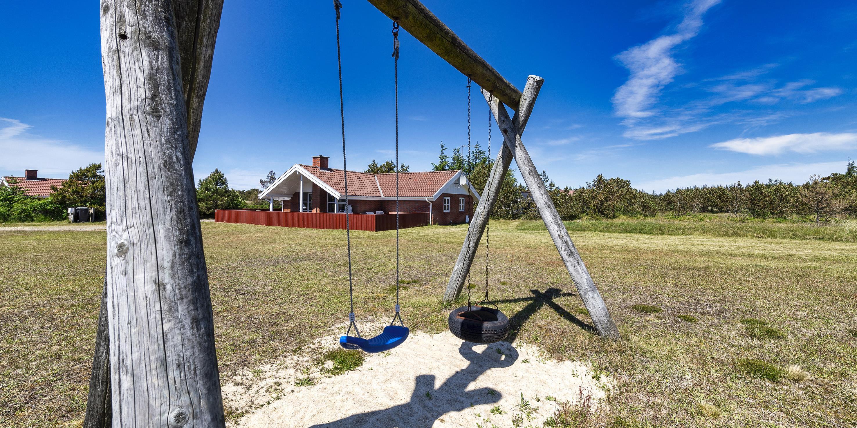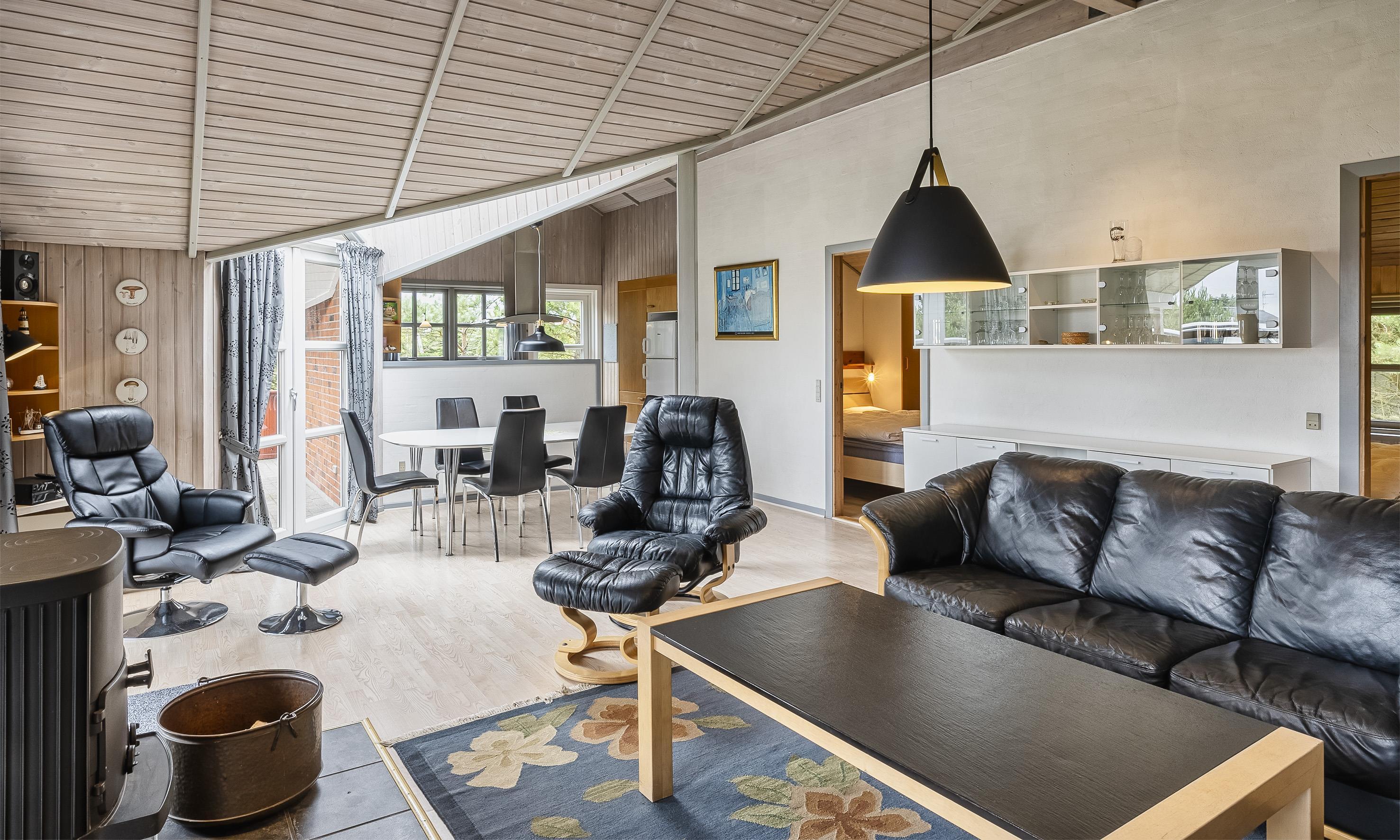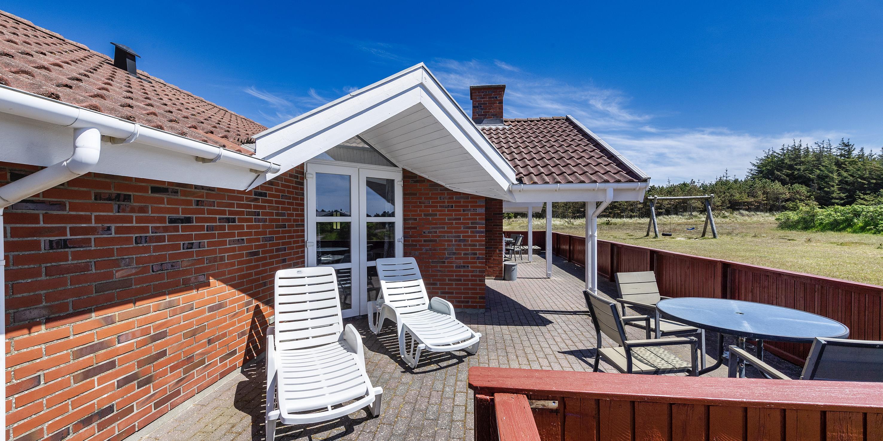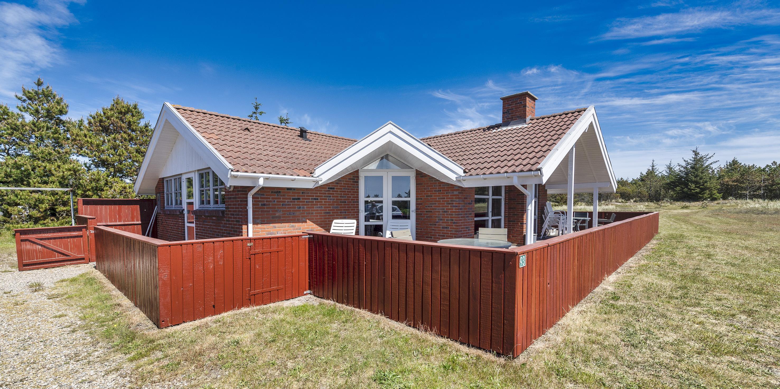 Komfortabelt sommerhus til 8 personer, ca. 1.000 meter fra stranden. 0 Meter til skov og asfalteret gang-/cykelsti med forbindelse til Vejers by, Grærup fiskesø og Henne. Ved leje er der adgang til den tilstødende private fiskesø. Stue med brændeovn. Åbent køkken med køle-/fryseskab, opvaskemaskine og mikroovn. 30 GB internet forbindelse, Smart-Tv med danske programmer samt Tysk TV via satellit. Nyt badeværelse med bruser/wc, spa, sauna og wc. Gæstetoilet. Vaskemaskine og tørretumbler. 3 soveværelser: DS + DS + 4S. 2 soveværelser med hver 1 dobbeltseng og 1 soveværelse med 2 køjesenge. Stor lukket terrasse. Sandkasse og gynge. Byggeår 1990.