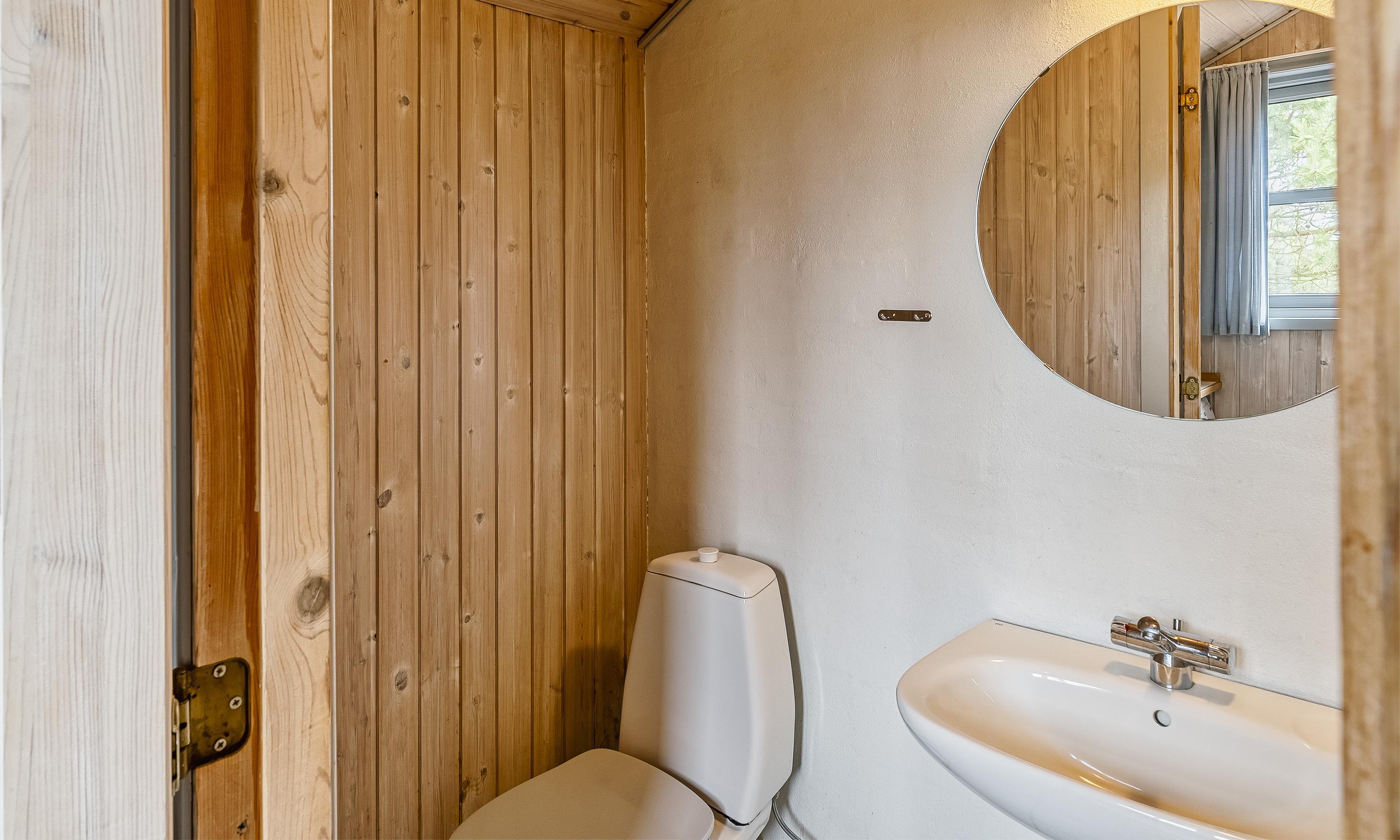 Bad med toilet, bruser og vask