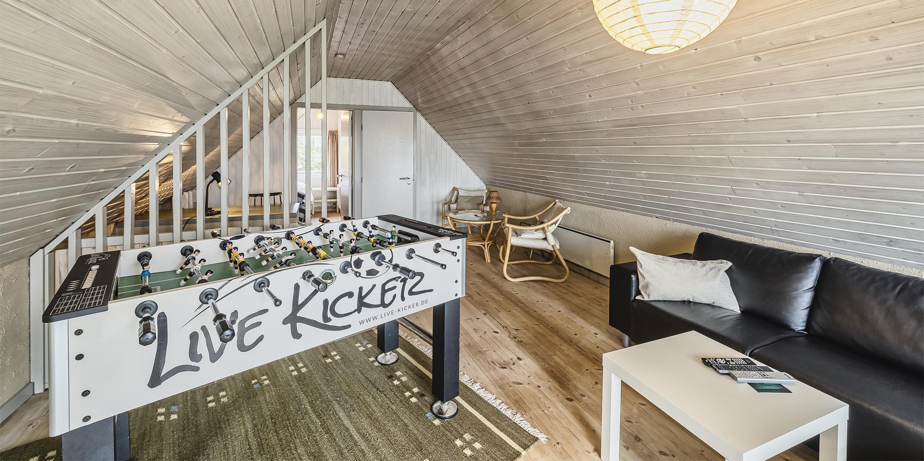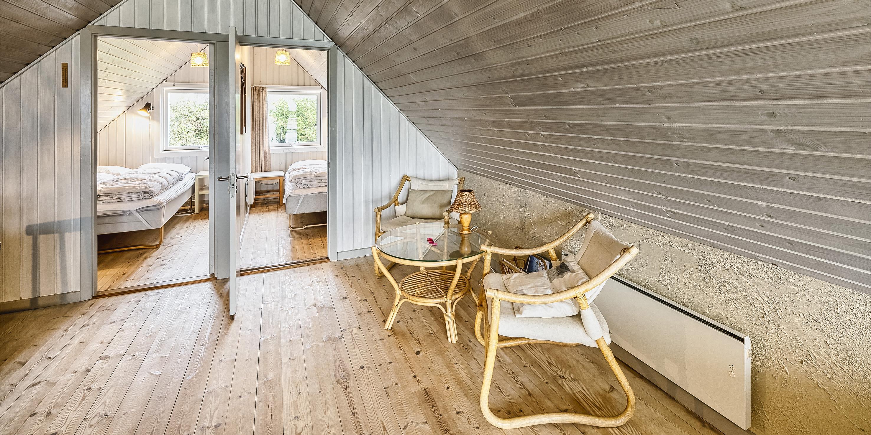 4 soveværelser. 2 med dobbeltseng 180x200 cm. 1 med sovesofa. 1 med 2 enkeltsenge (á 90x200 cm)