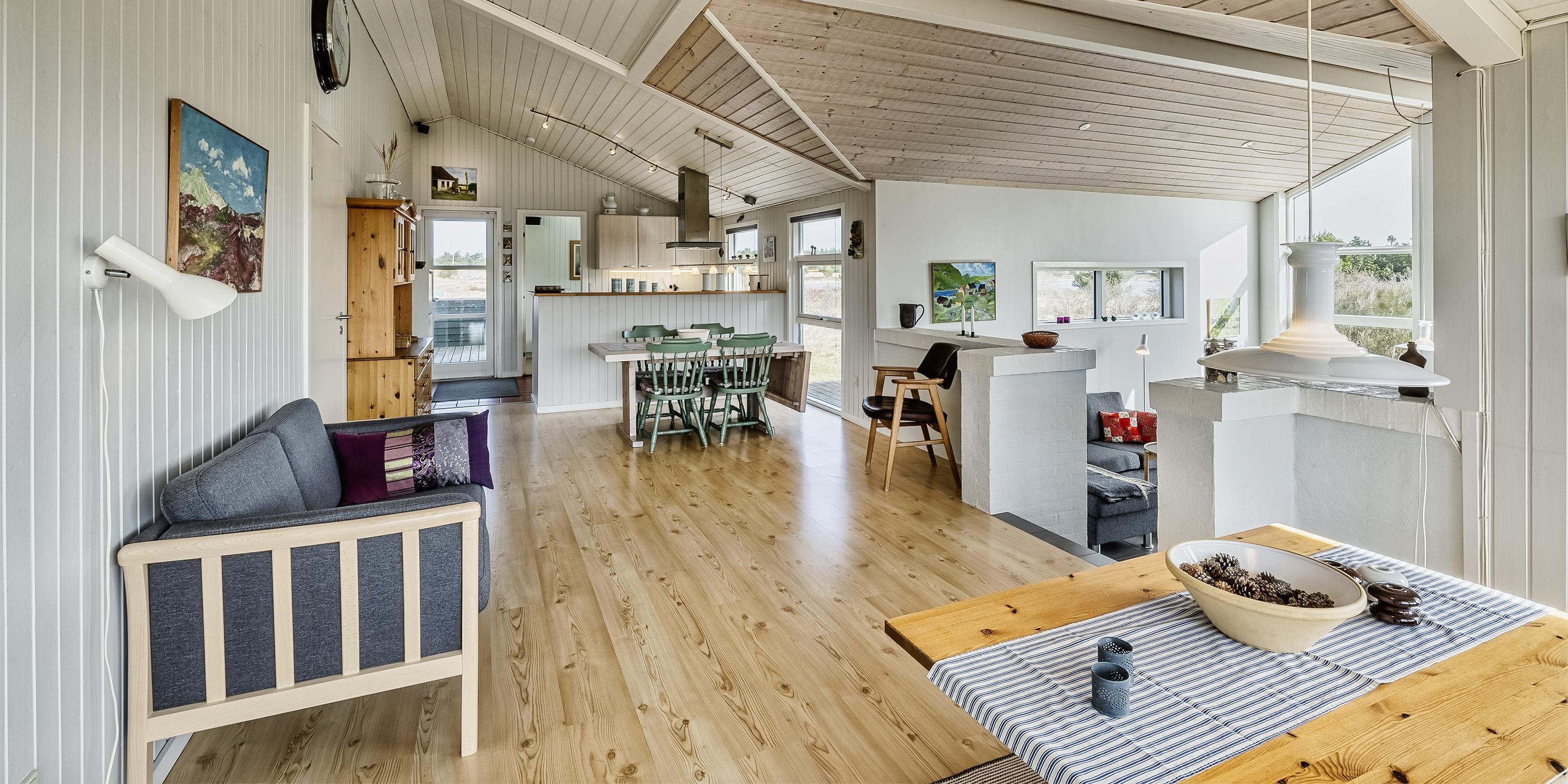 Nydeligt sommerhus til 4 personer, beliggende på stor naturgrund, ca. 800 meter fra stranden. Stue med gulvarme og med fjernsyn, Google Chrome Cast og parabol samt pejsestue. Varmepumpe. Åbent køkken med opvaskemaskine, mikroovn,køle/fryseskab. Badeværelse med bruser/wc og gulvarme, sauna og vaskemaskine. 2 soveværelser: DS + 2S. 1 værelse med en sovesofa. Trådløs internet (30/30). Terrasse. Husdyr er ikke tilladt! Rygning er ikke tilladt! Byggeår 1987, renoveret 2009.