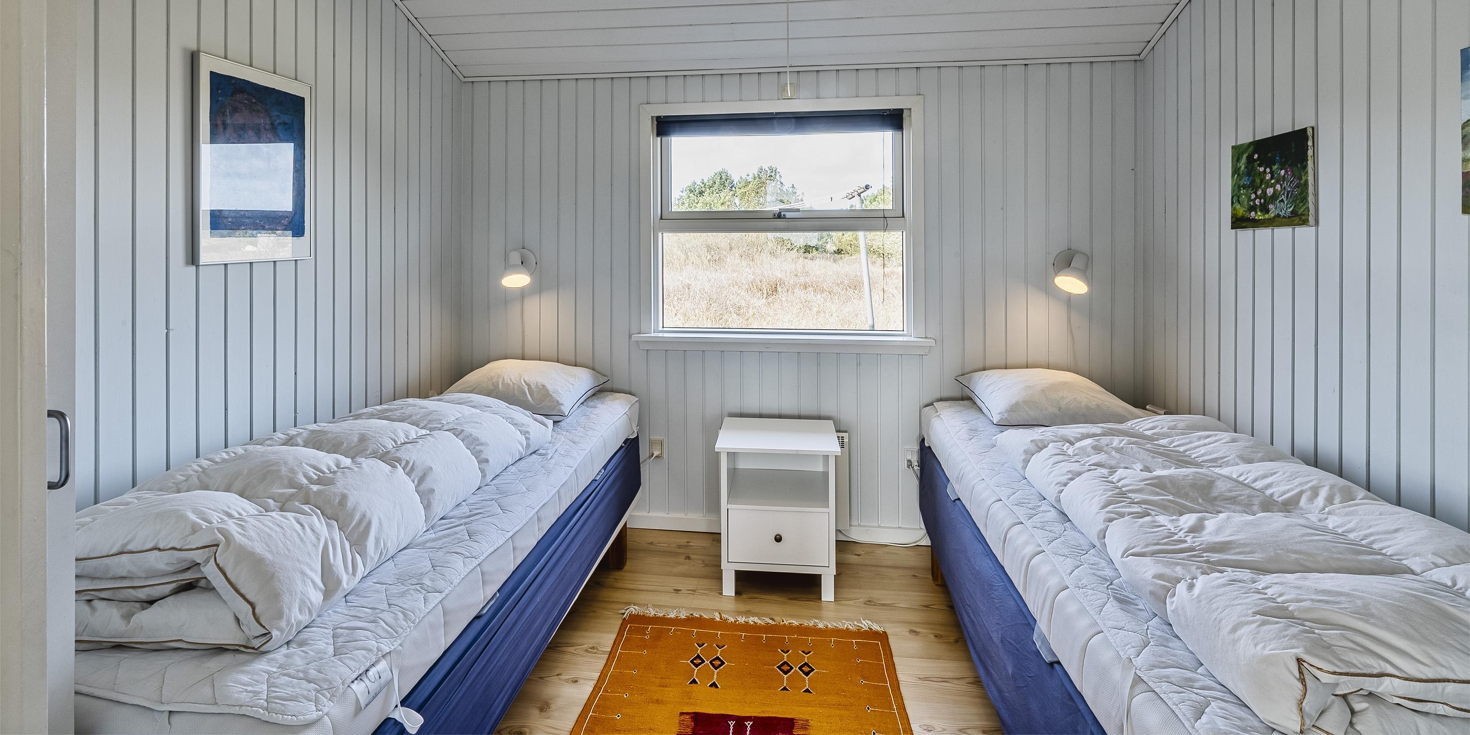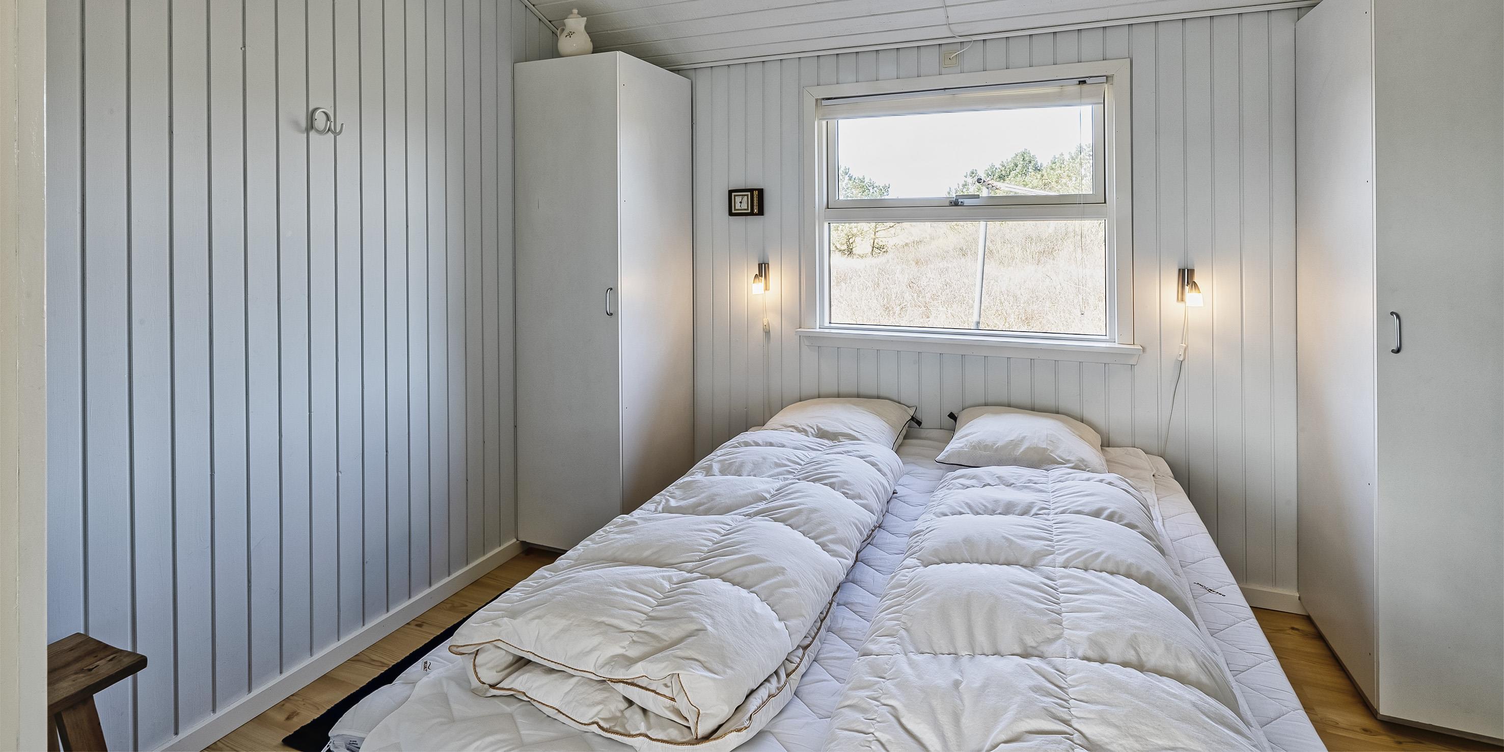 2 soveværelser, 1 med med dobbeltseng 180x200 cm.1 med 2 enkeltsenge (á 90x200 cm)