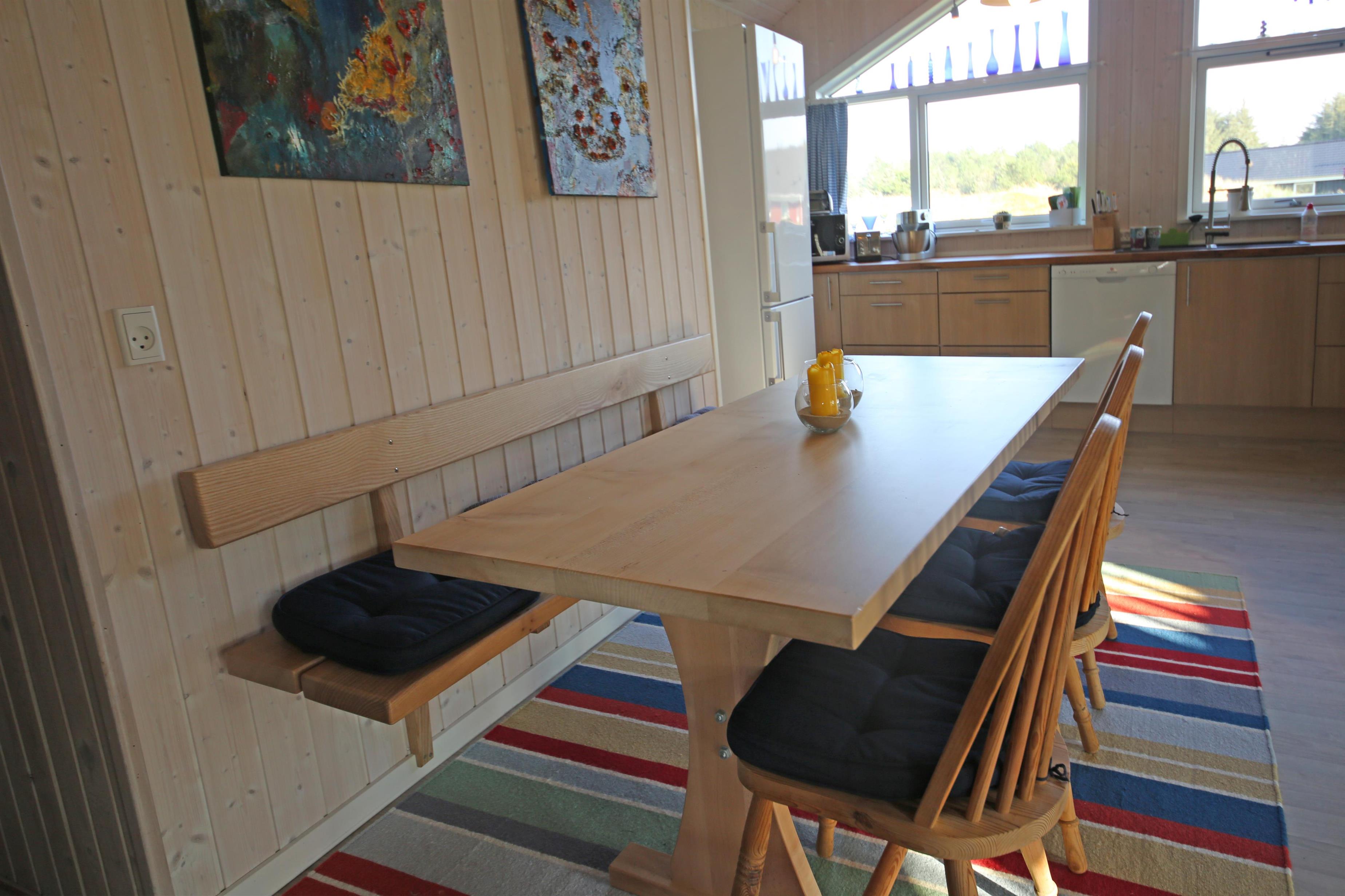 Hyggeligt sommerhus til 4 personer, ca. 1.000 meter fra stranden. Stor rummelig entre. Åben stue med brændeovn, fjernsyn med Stofa sommerhuspakken og trådløs internet, udgang til udestue. Nyt åbent køkken med opvaskemaskine, mikrobølgeovn og køle-/fryseskab. Viktualierum. Badeværelse med bruser/wc. Vaskemaskine. 2 soveværelser DS + 2S. 1 soveværelse med 1 dobbeltseng og 1 soveværelse med 2 enkeltsenge. To terrasser samt overdækket indgangsparti med mulighed for henstilling af cykler. Sandkasse og gynger. Rygning er ikke tilladt. Byggeår 1990, renoveret 2015. Elbiler kan oplades ved huset.
